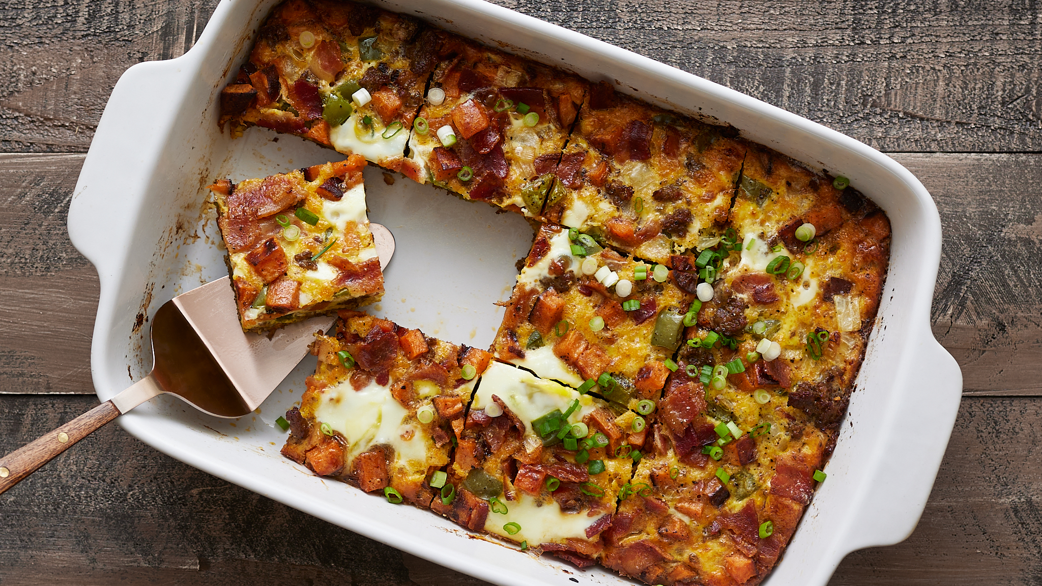 This isn't just a good morning... this is the best morning thanks to the Best Beginnings Casserole! Within a bed of creamy, tender eggs, you'll have all the best things to get your day started — beautifully seasoned sweet potatoes, savory breakfast sausage, crispy bacon, and melted cheese! No matter what today holds, you know you can take it on thanks to this Best Beginnings Casserole! Hooray!