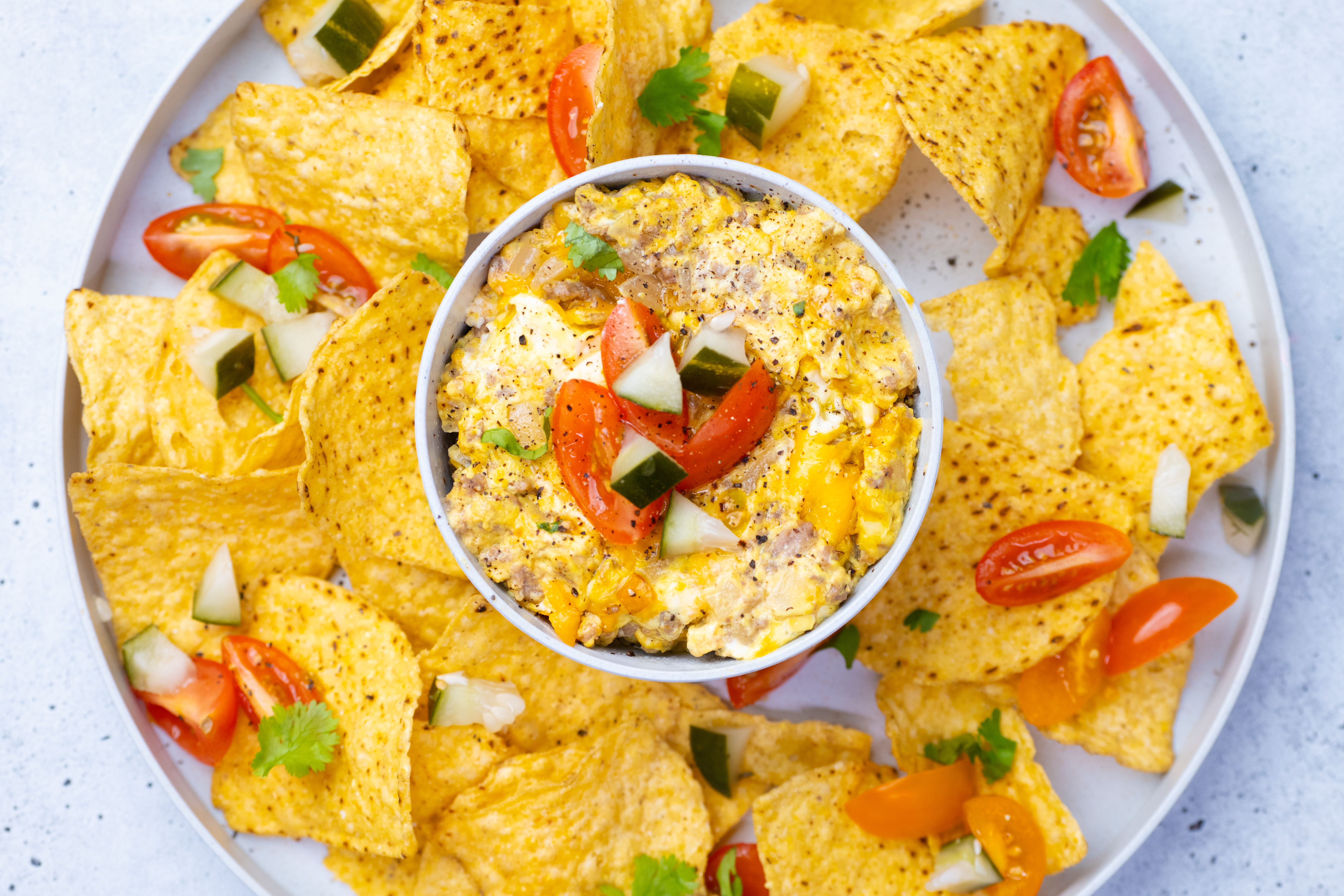 Whether you're splashing in the pool, sailing in the ocean, or nowhere near a body of water, steer your taste buds towards this sensuous treat! Cheeseburger-In-Paradise™ Dip isn't zucchini, fettuccine, or bulgur wheat, but instead a special, creamy take on that Heaven-on-Earth handheld you treasure so much. Packed full of some juicy ground beef, savory cheese, and even tomatoes, mustard, and onions (just like Jimmy said you need), your tortilla chips will be extra nice with a taste of this American creation on top. Cheeseburger-In-Paradise Dip really makes the best of every virtue and vice, so dive in and enjoy!
