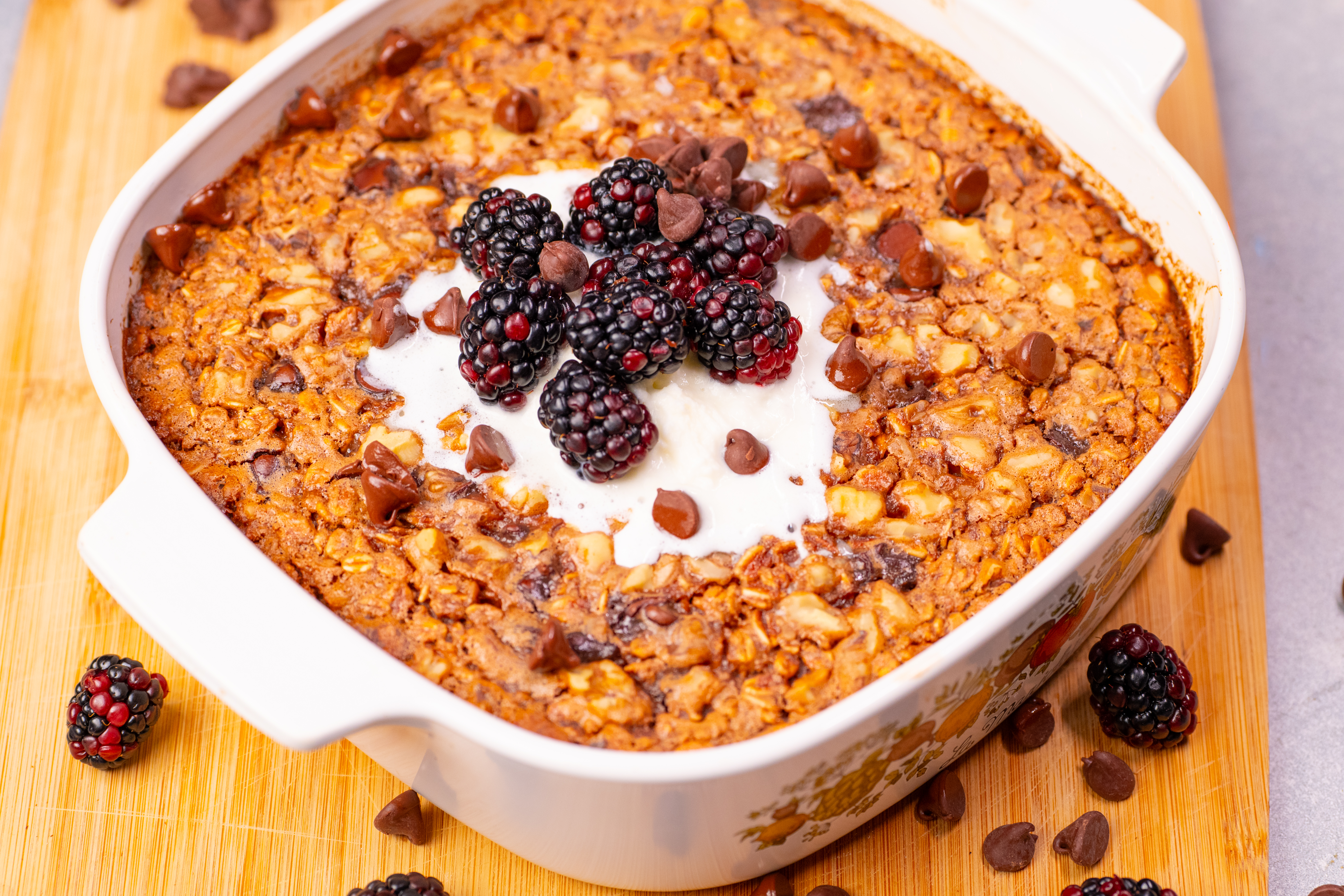 Dessert Breakfast! Such a delicious concept! But can you really square the circle, so to speak, with a hearty, nourishing breakfast that tastes like dessert? Turns out, the answer is yes! This baked oatmeal is infused with rich, melty chocolate, smoky maple syrup, and molasses-sweet brown sugar to make the wholesome oats and crunchy walnuts almost brownie-like in their flavor! Served with some fresh berries, Dessert Breakfast is truly the best of both worlds!