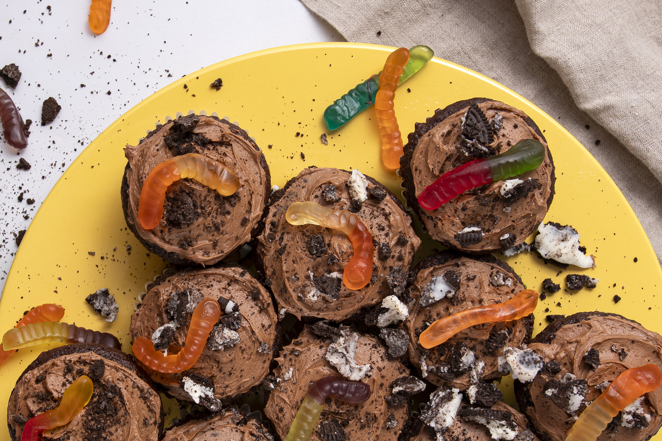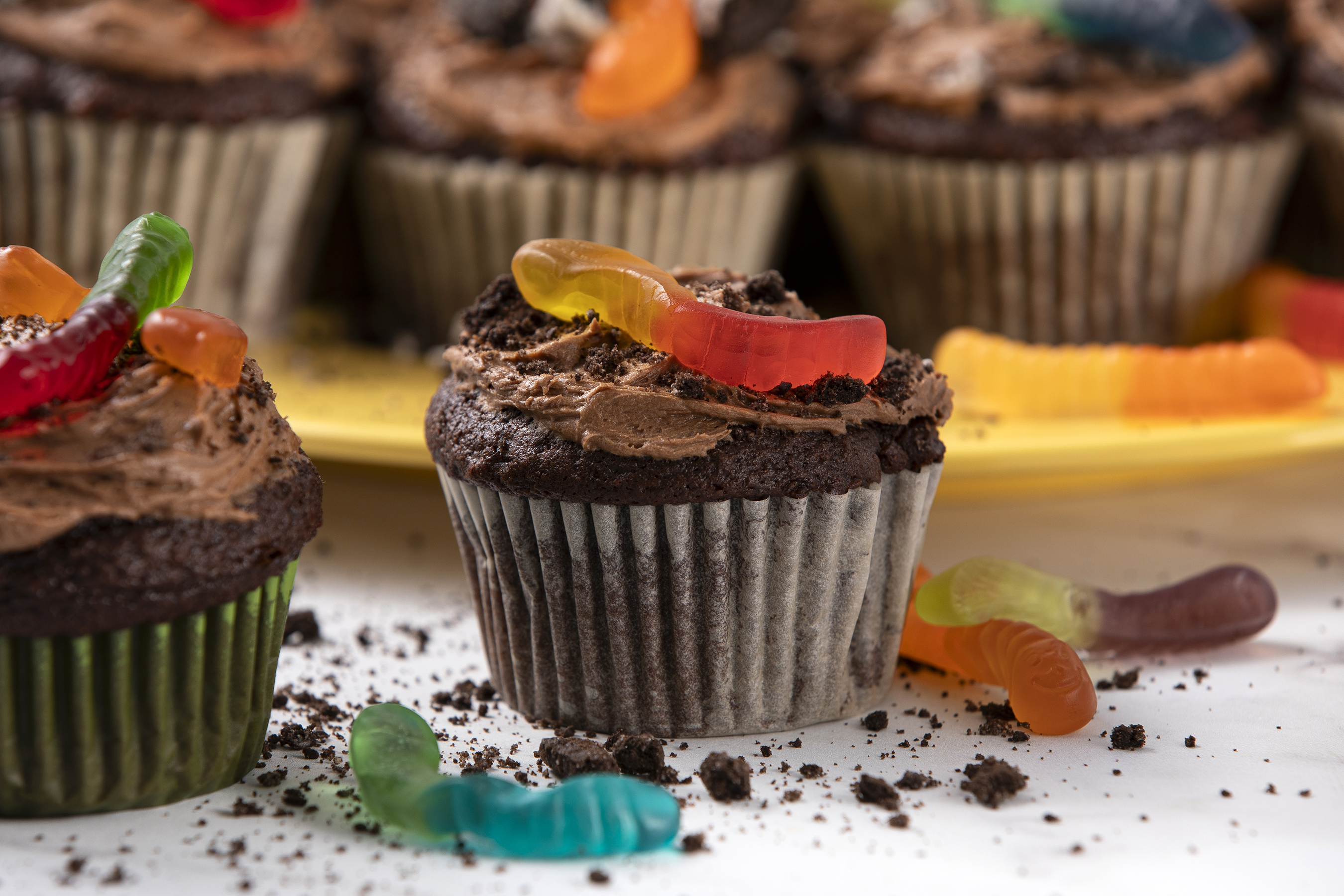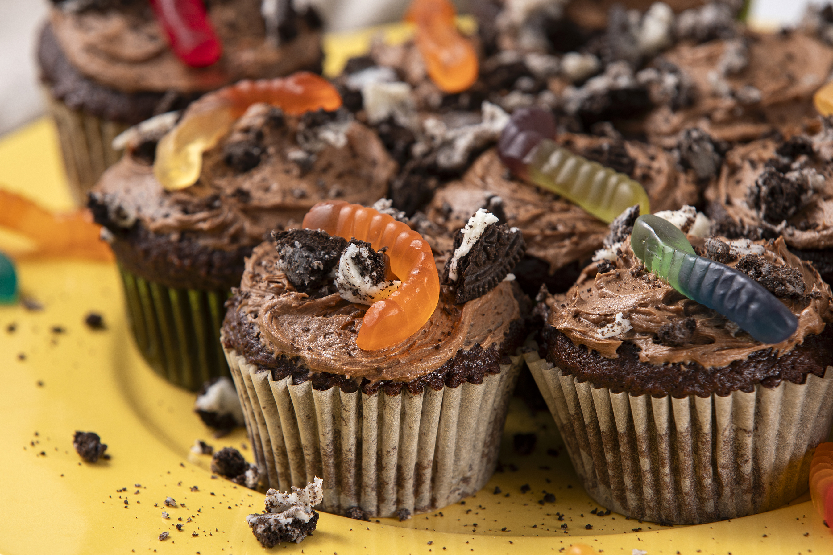 Unearth a new way to enjoy your very favorite cookie! Dirt Cupcakes will wiggle their way into becoming one of your favorite sweet treats! Oozing with all the rich chocolate flavor you could dream of, these moist cupcakes boast a creamy chocolatey icing, a "clean", non-squirmy gummy worm, and a dusting of crumbled chocolate sandwich cookies! Brush off your baking tins and clean up your cupcake game with these Dirt Cupcakes. It's a sinkhole of chocolate you will never want to leave. We know you're going to dig it!