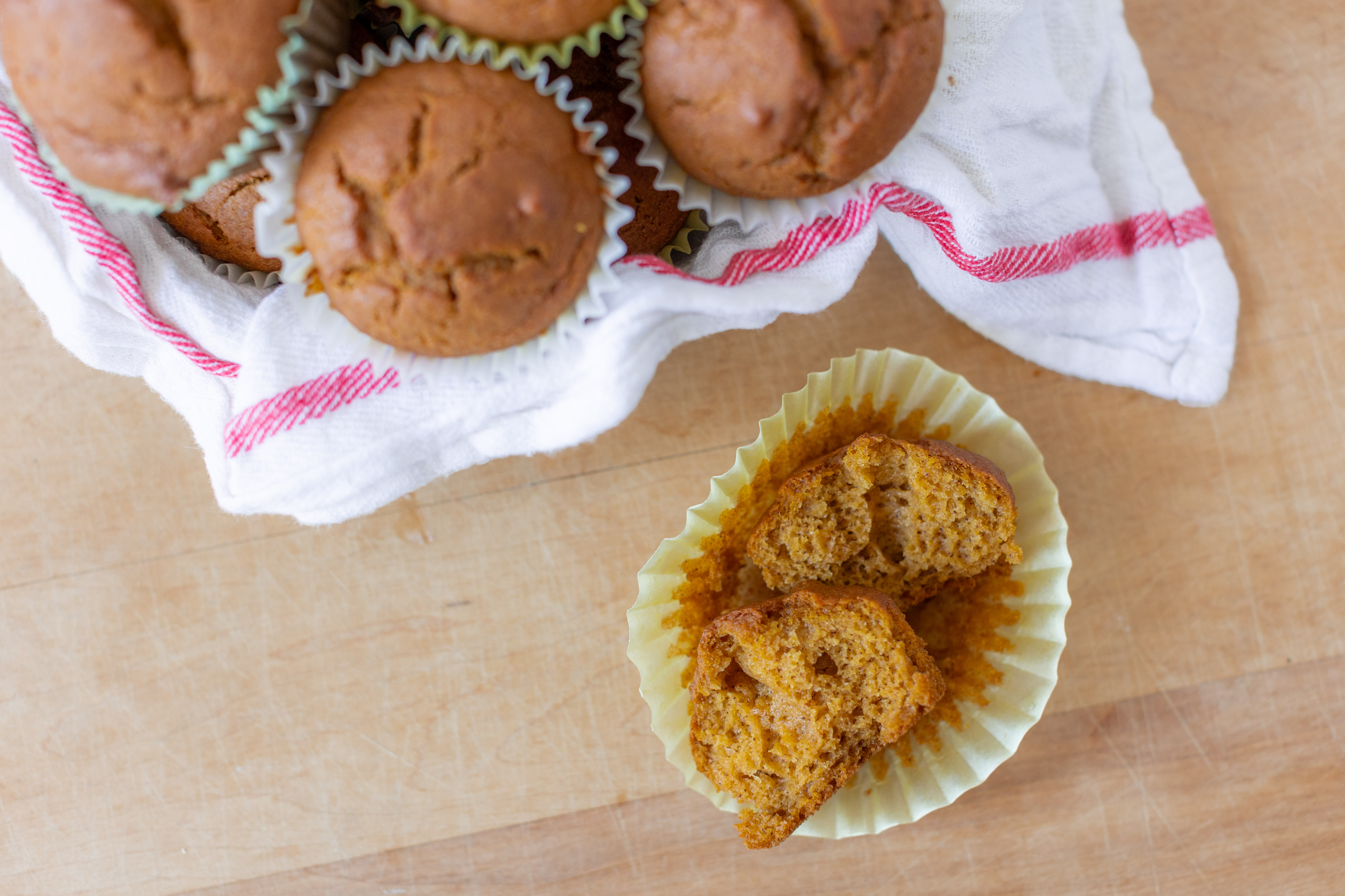 Step 7 -Add a scant 1/2 teaspoon of the pumpkin spice to each muffin cup and use a toothpick to swirl the spice into the batter.