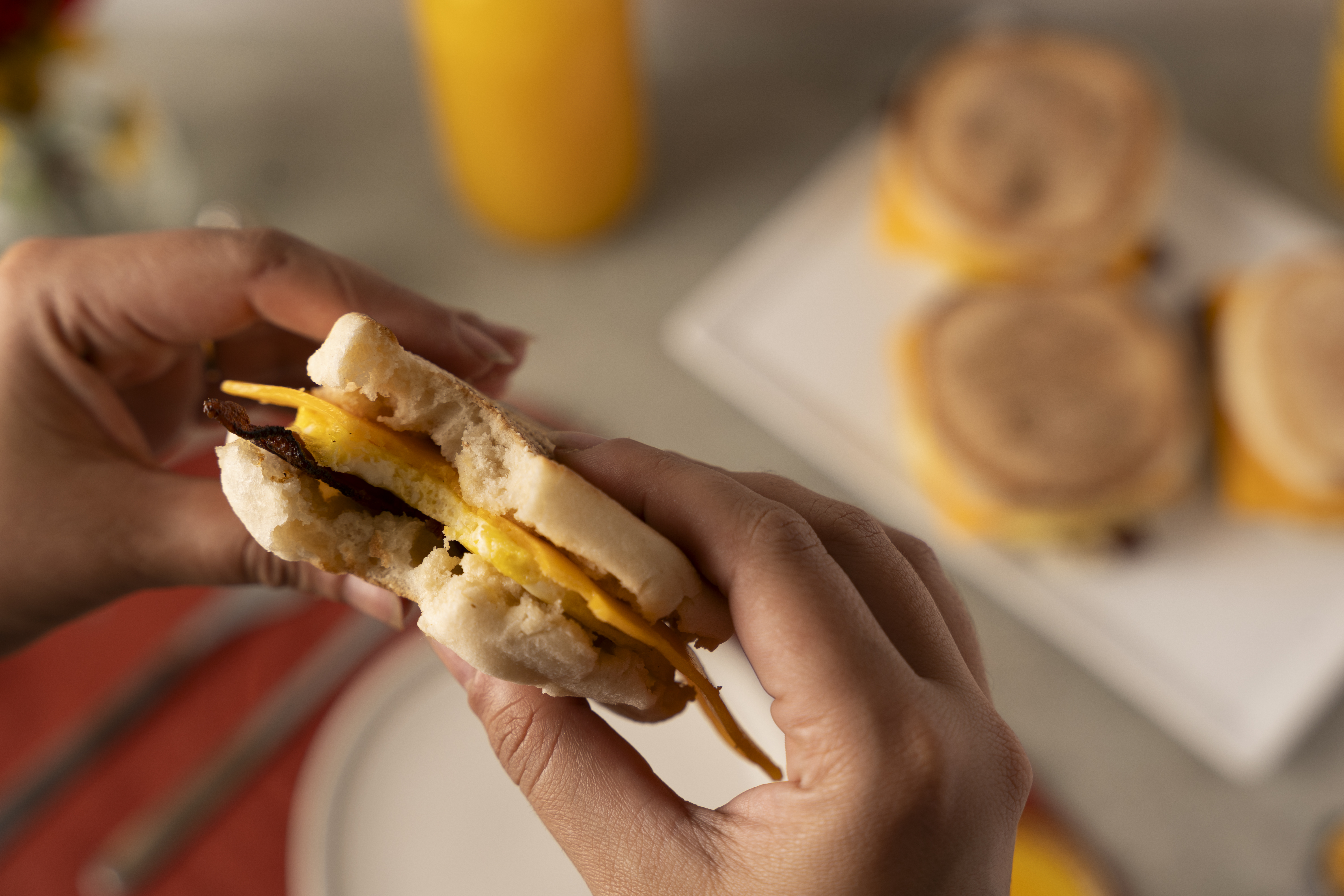 Time to go! The morning rush is on and, of course, you and the family are in a hurry! You're not even sure you can squeeze in breakfast. But don't worry! You can! Family Breakfast Sandwiches make enough for a family of four in less than half an hour! That means everyone can get a hot, fresh sandwich filled with savory egg, succulent and crispy bacon, and melty cheddar! There are few things better for a tight morning schedule than Family Breakfast Sandwiches! Don't let a rush ruin your most important meal!