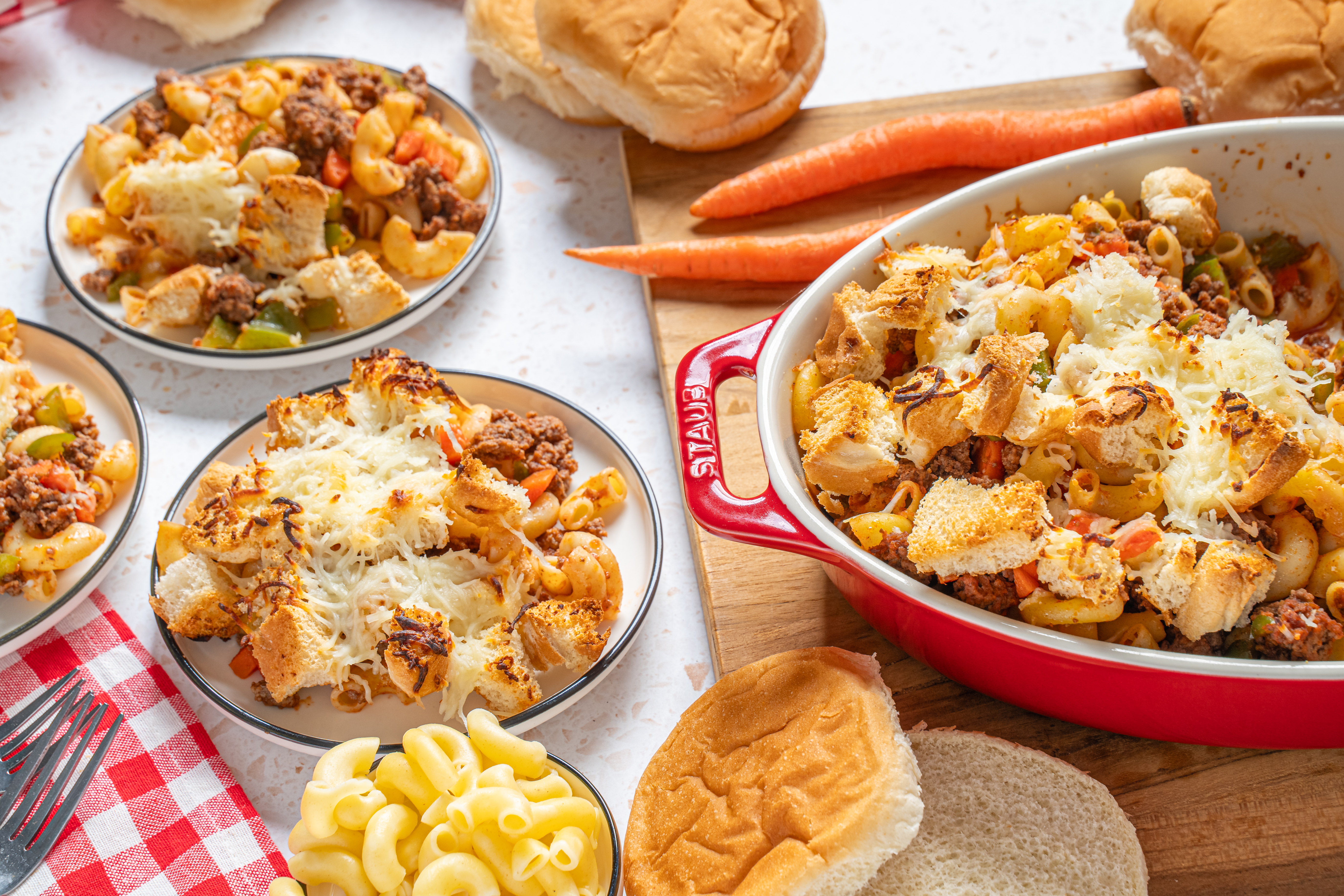 The Family Night Casserole is designed to bring everyone to the table because... well, it's a sloppy Joe in casserole form. What more needs to be said? The succulent beef in that classic sweet and tangy sauce would create feelings of nostalgia or childhood whimsy all on its own. But with a crunchy bun topping, tender elbow macaroni, and plenty of cheese? It becomes something wonderful and the start of brand-new, happy memories! Family Night Casserole is the best way to make everyone at the table happy.