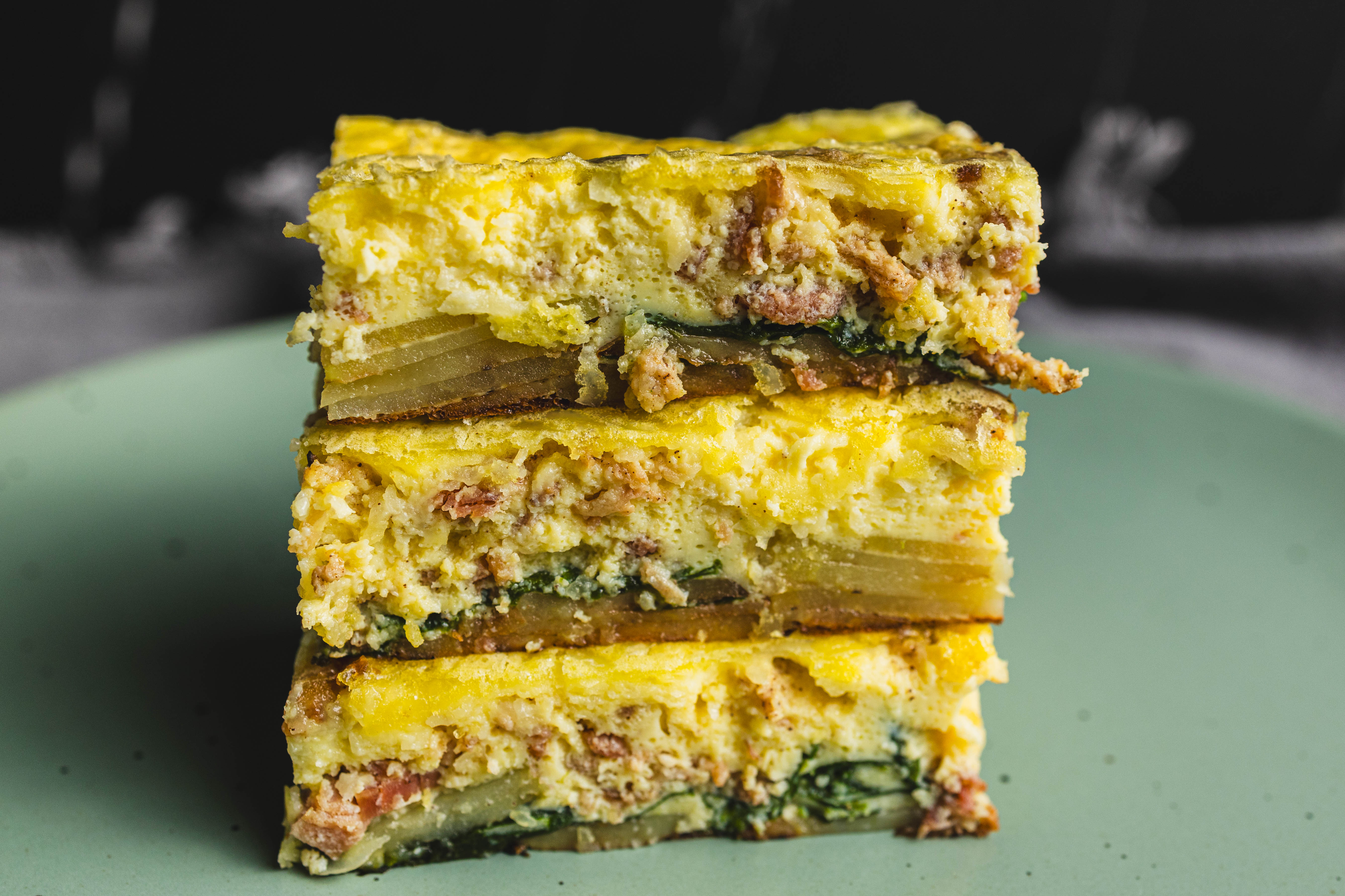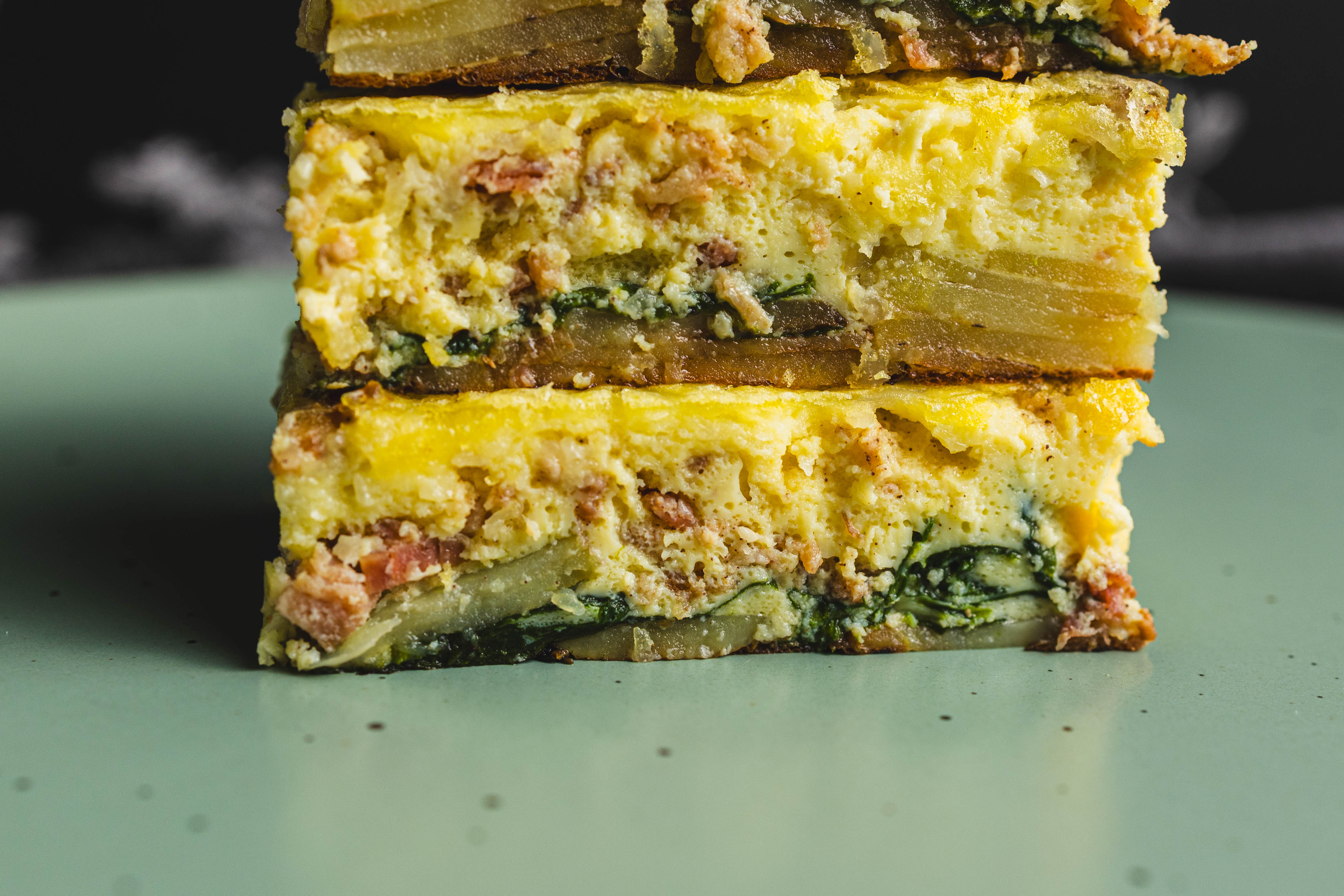 What makes the Famous Frittata such a star is that it has everything you could want for breakfast nestled into its fluffy, creamy egg bed. Slices of tender potato? Yep. Succulent, crispy bacon? Absolutely. Garden fresh spinach. Check. Buttery fontina cheese. You got it! Famous Frittata is going to rise to superstardom in your kitchen!