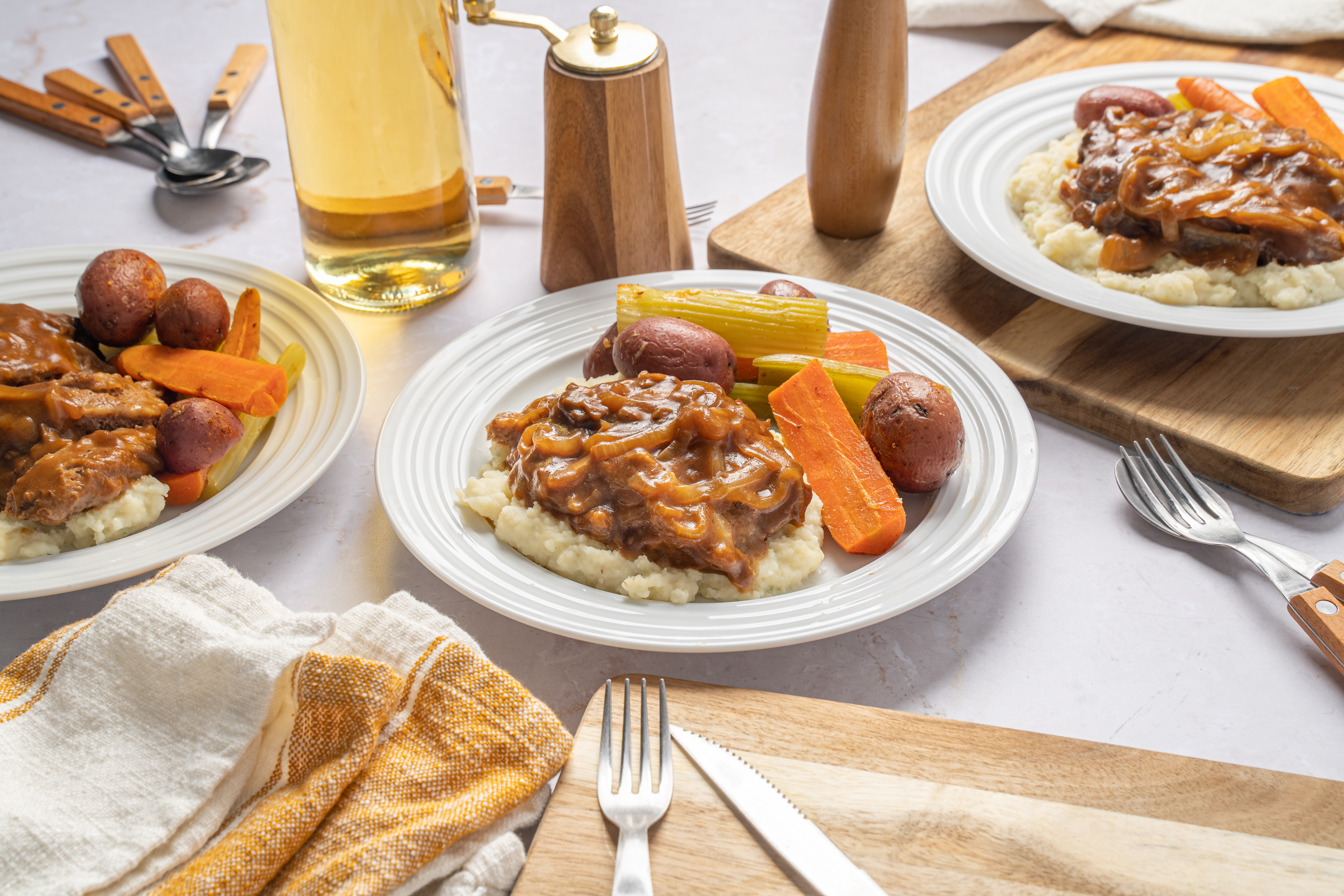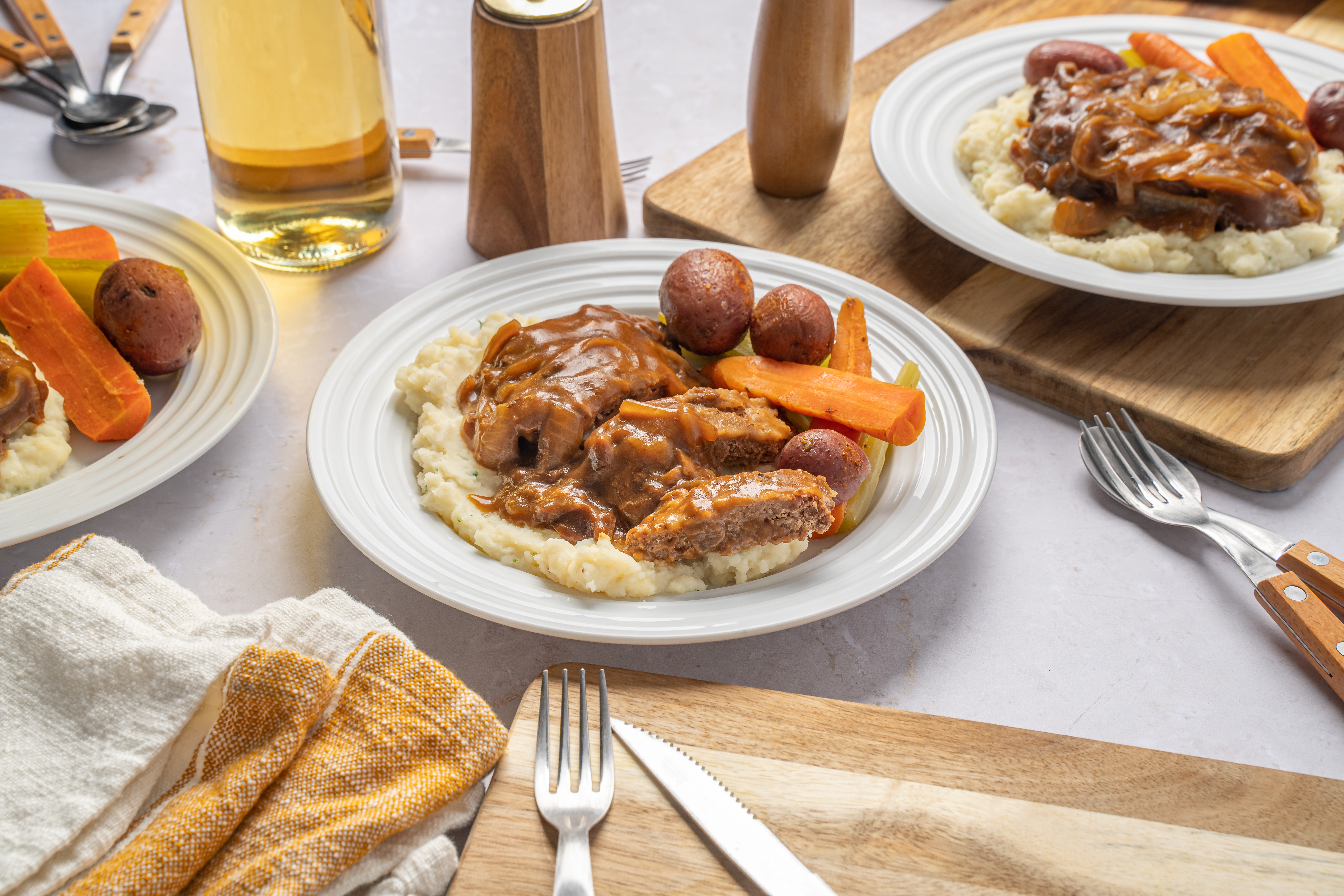 Our grandma has this funny sign in her kitchen that says, "Grandma's Kitchen: Open 24/7." It always gives us a good laugh and we joke about how it is more so for grandpa than for all the grandchildren... since he's there more frequently than we are. Sure, we tease him, but really, we can't blame him. We love how she'll endlessly whip up our favorite bites when we visit. And when it comes to dinnertime, she always makes us her Grandma's Cubed Steak & Gravy dish that just makes our tastebuds go wild. We'll load our plates up with creamy mashed potatoes topped with the most tender steak and the tastiest gravy as we talk about our most cherished memories together... most of which are surrounding a table eating this dish. We love that her kitchen has brought us such precious moments and we hope that Grandma's Cubed Steak & Gravy will do the same for you!