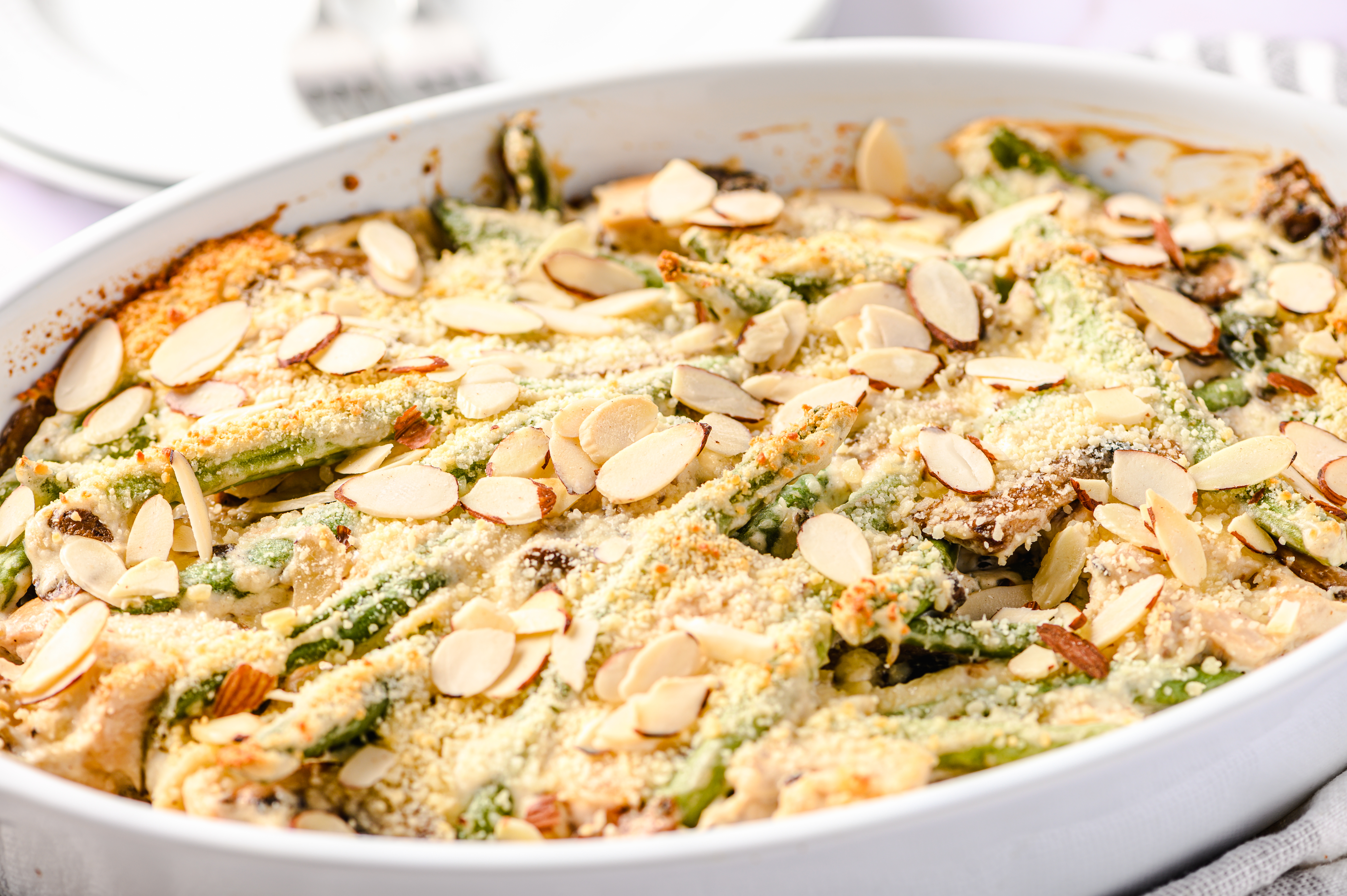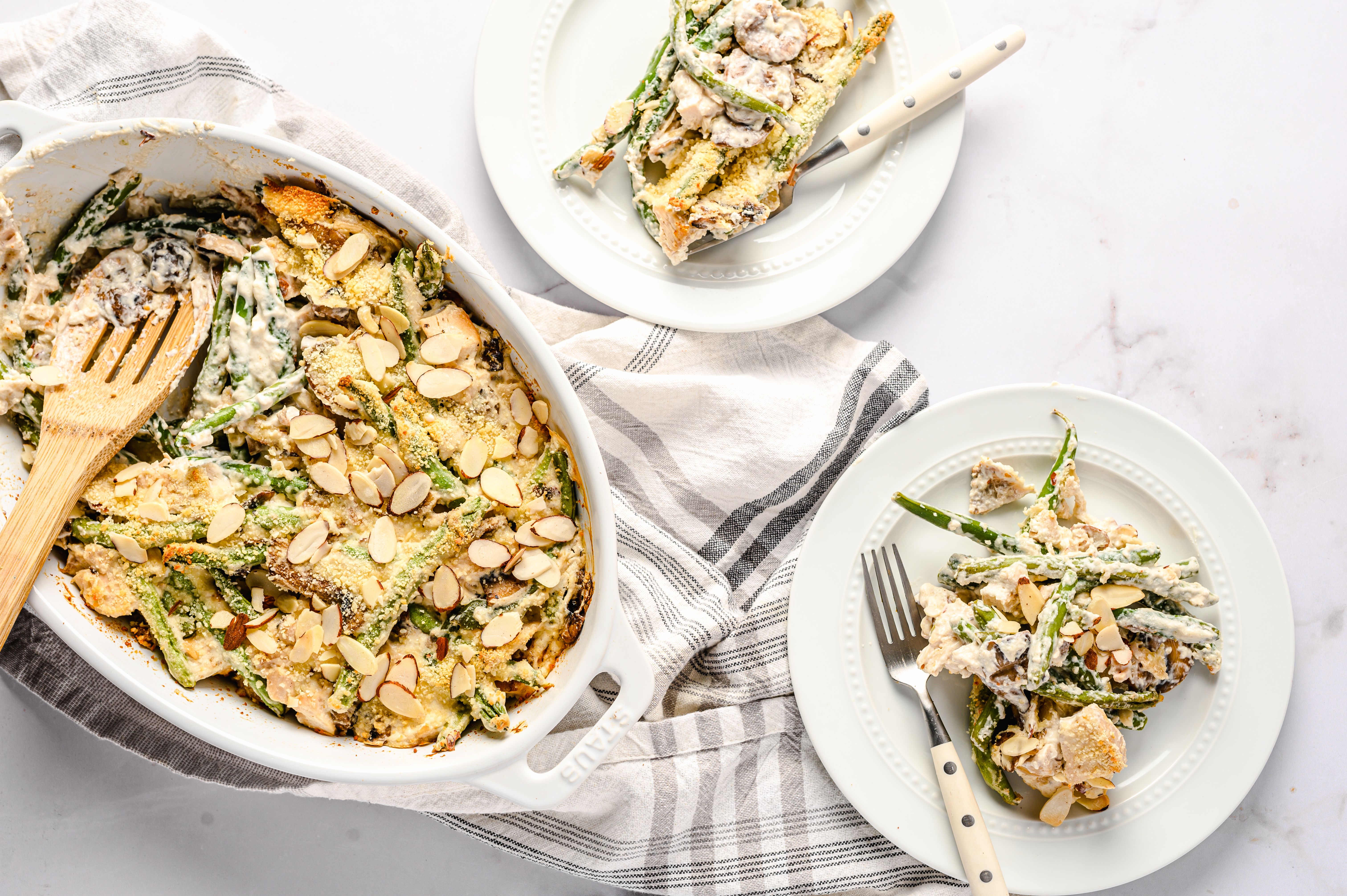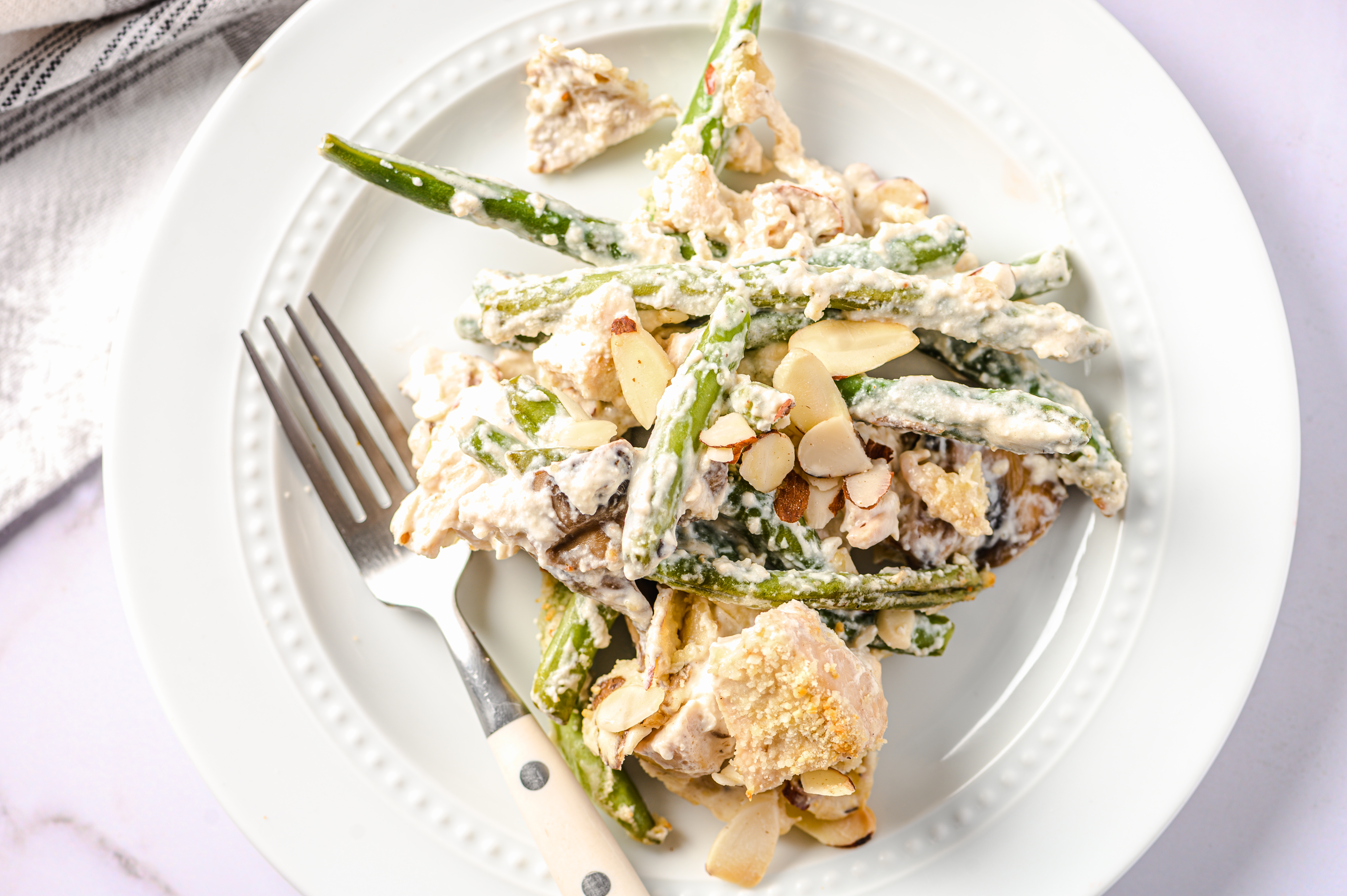 Finding good companionship is one of the secrets to a wonderful life. Green Bean Chicken Casserole is a testament to that truth. It combines all the things you love about the average green bean casserole scene, but this one made a new friend... chicken! The always-adored chicken is surrounded by faithfully fresh green beans and tenderly coddled mushrooms, and these new friends are just swimming in a compassionately creamy sauce that unites their newfound relationship in perfect harmony. Let Green Bean Chicken Casserole take your dinner to a whole new level of food love. Isn't it so great to find compatible, new, foodie friends?!