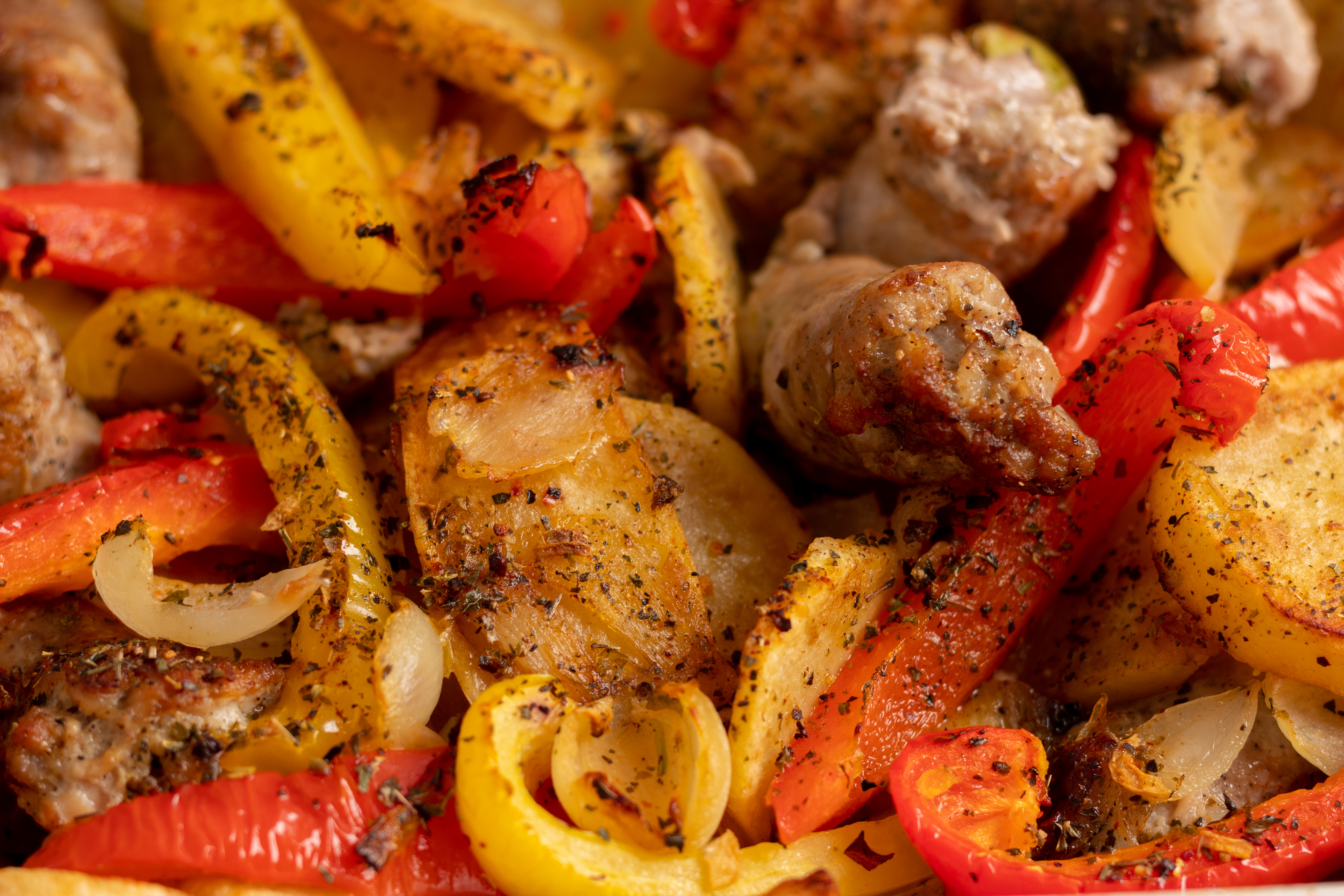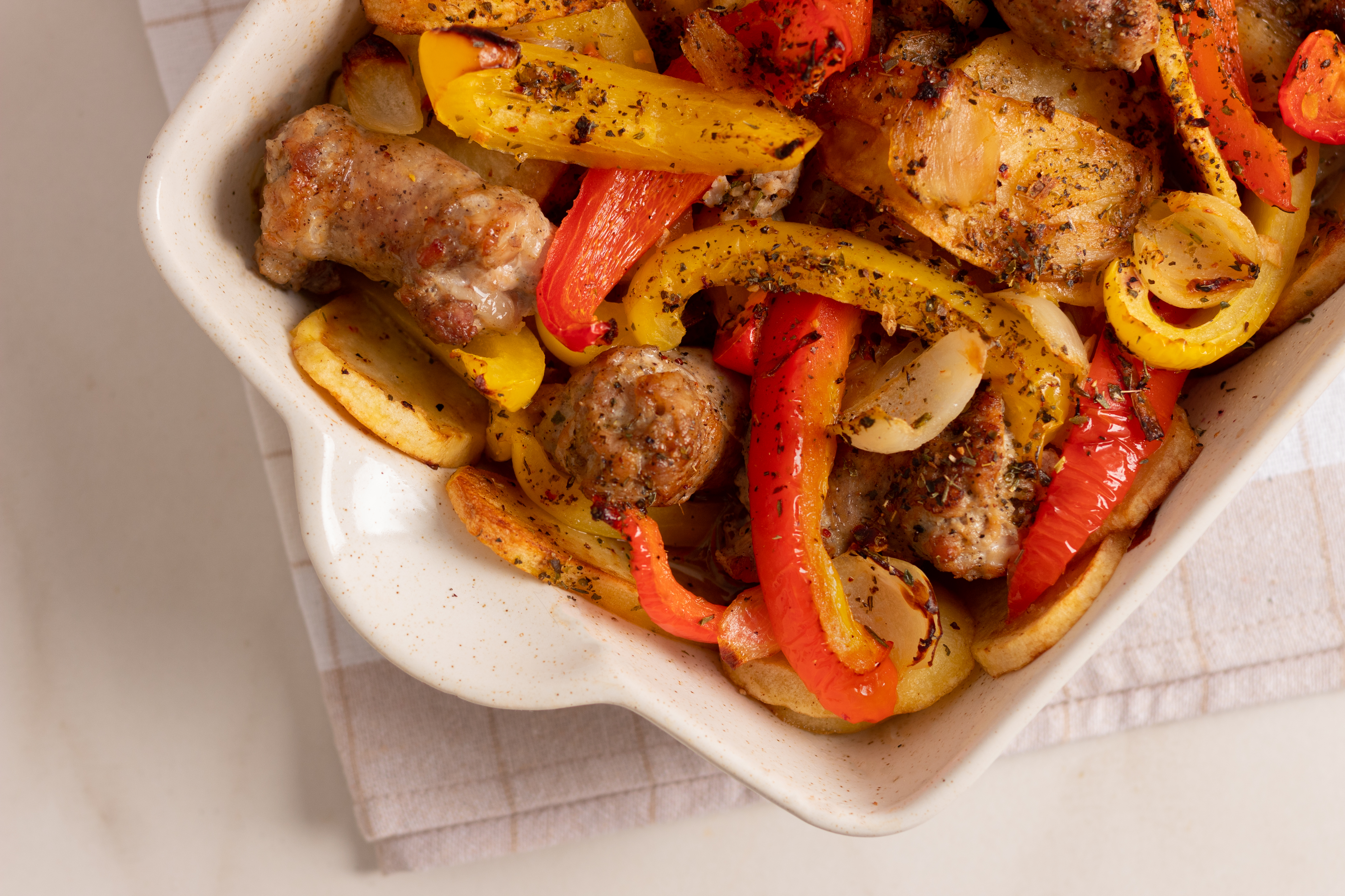 Nothing says Sunday like a sit-down, get-caught-up-and-rest meal! This Italian Sausage Bake encompasses all the homey flavors you love on a Sunday, or any day, in one outstanding dish. Perfectly seasoned Italian sausages, fork-tender potatoes, a flavor-fest of peppers, and fragrant, softened onions all seasoned to perfection and so very easy to get addicted to! Everyone will be gathering around for this Italian Sausage Bake, each and every time. Relax and sit for a spell.