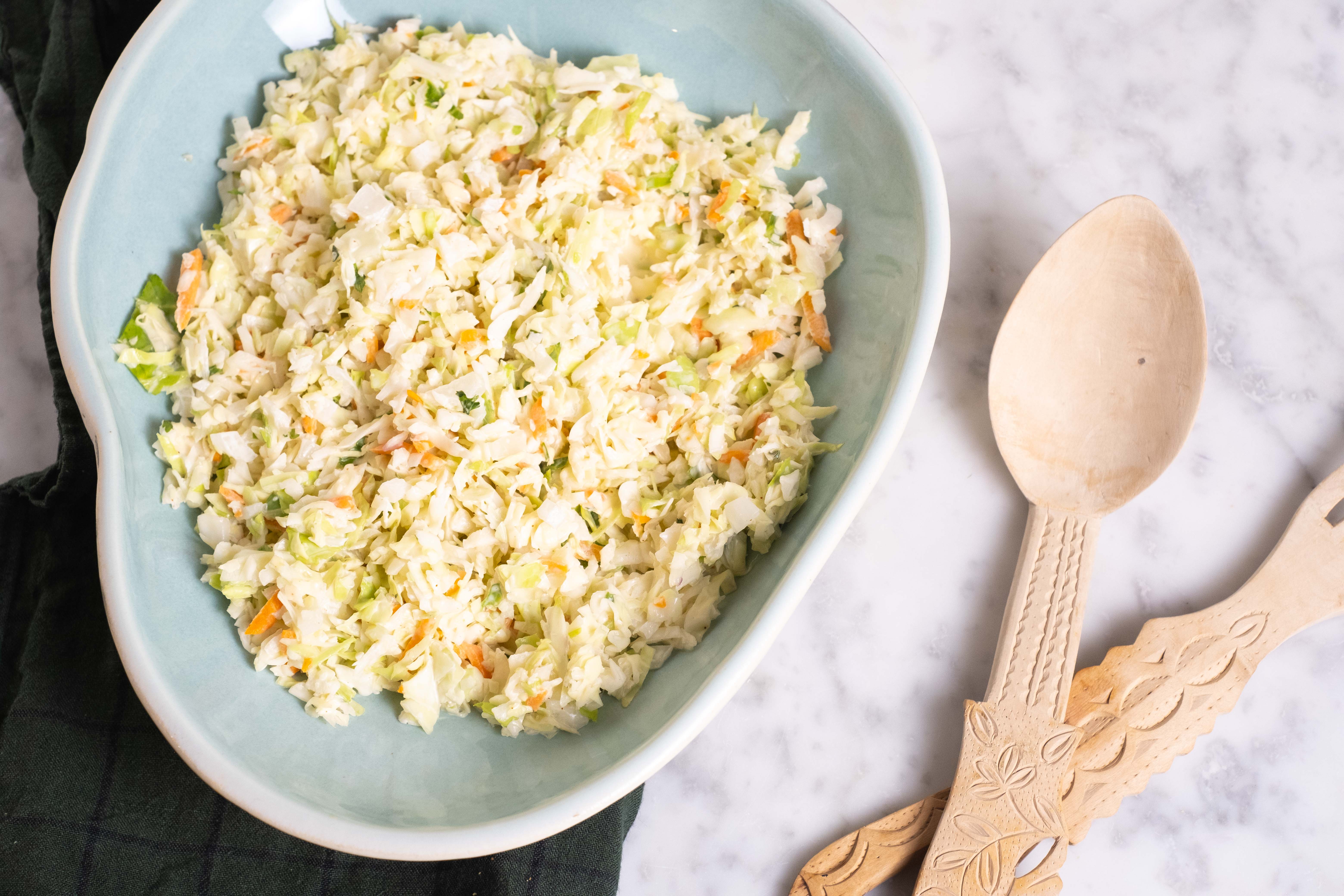 Step 8 -Taste the coleslaw and season with more of the salt as needed.