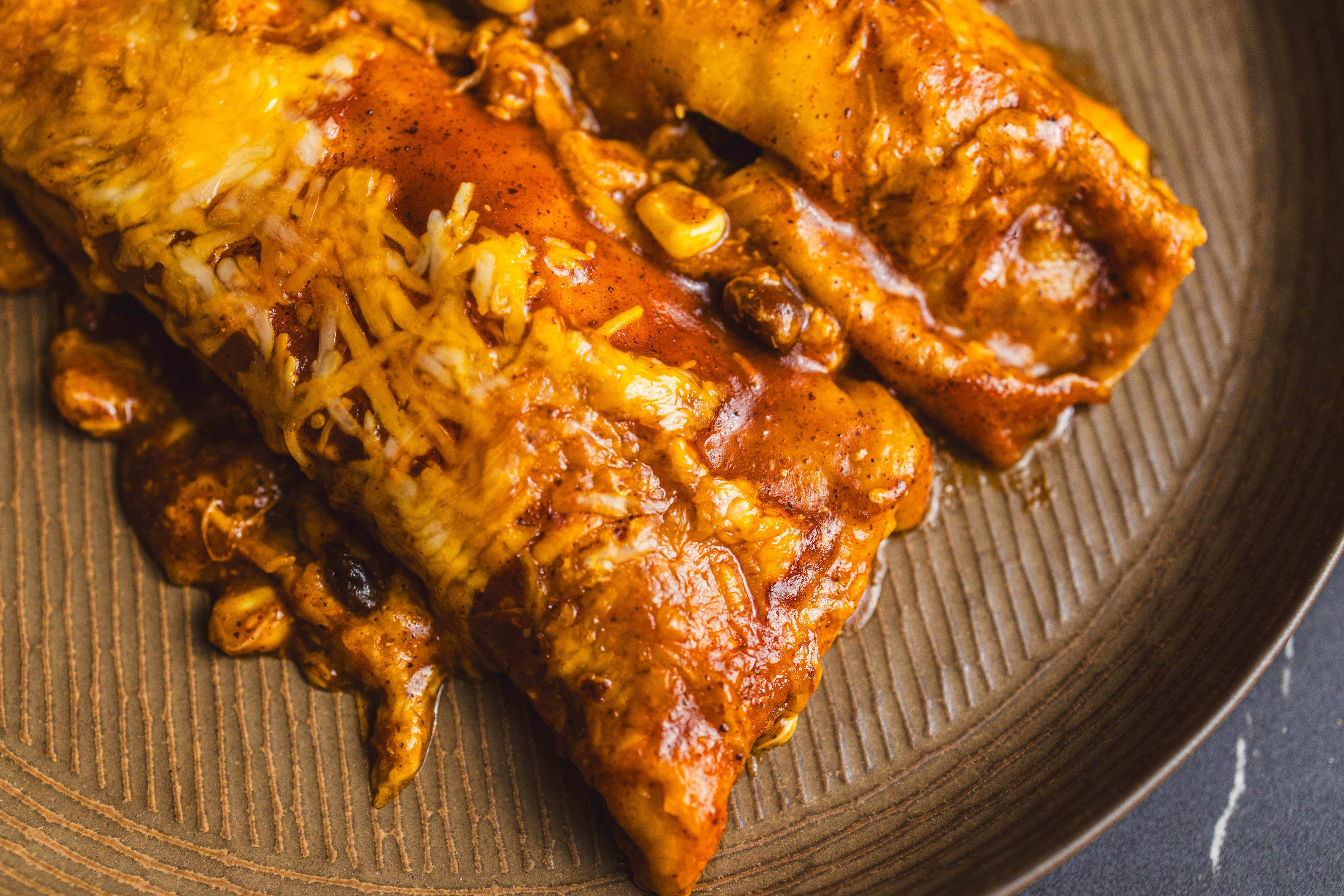 Step 3 -In a bowl, add the shredded chicken, the salsa, the corn, the black beans, the chiles and their juices, and 1/2 cup of the enchilada sauce.