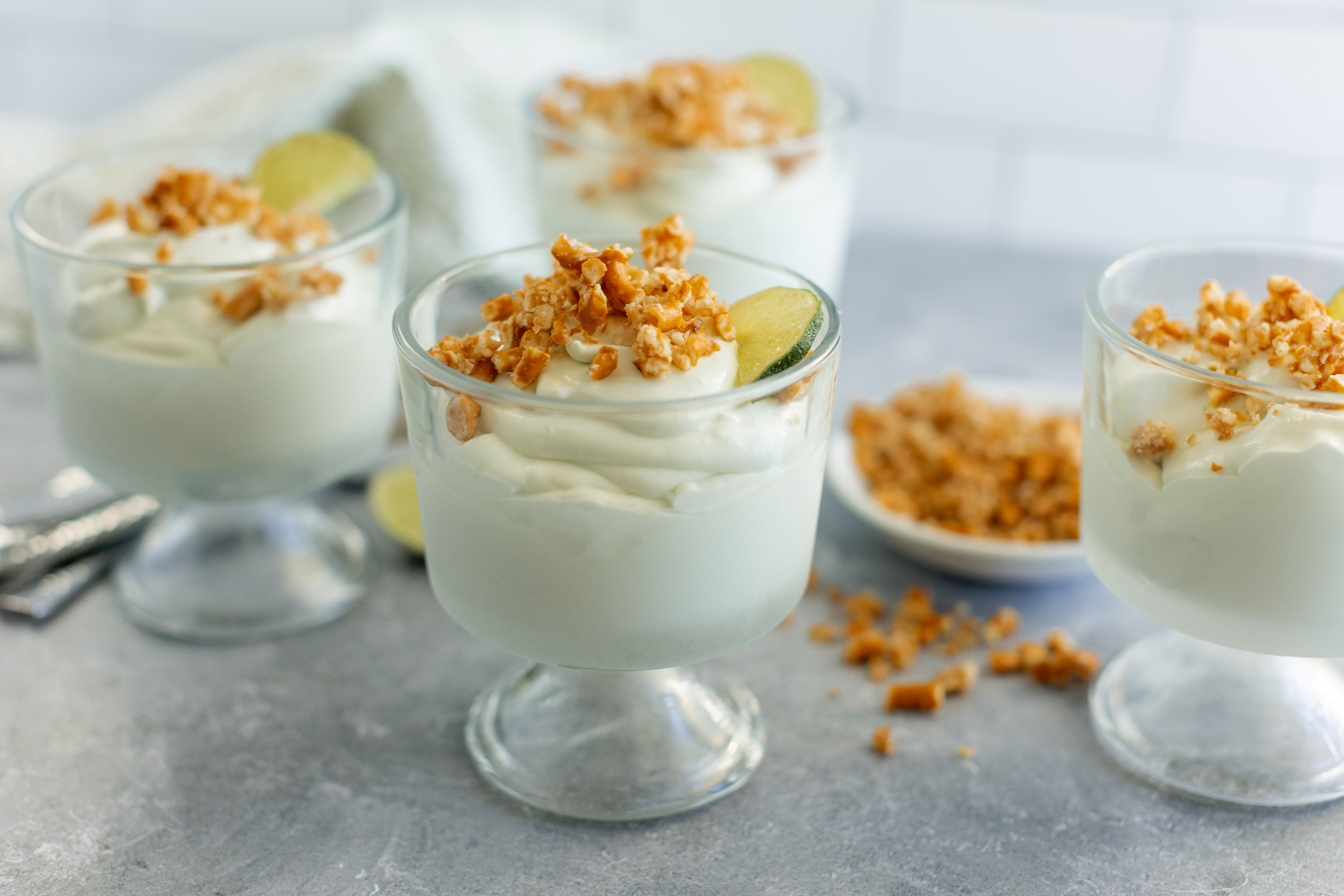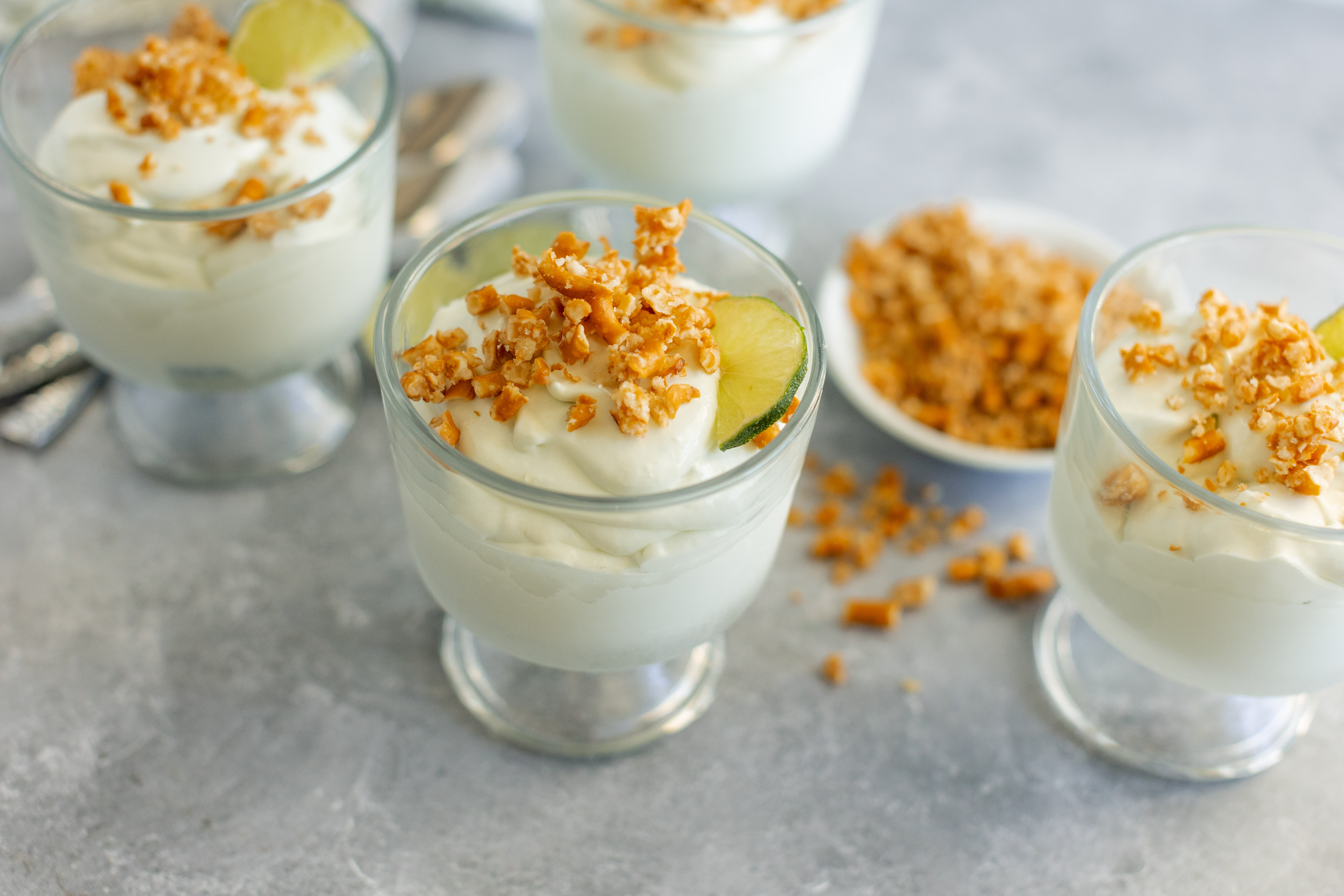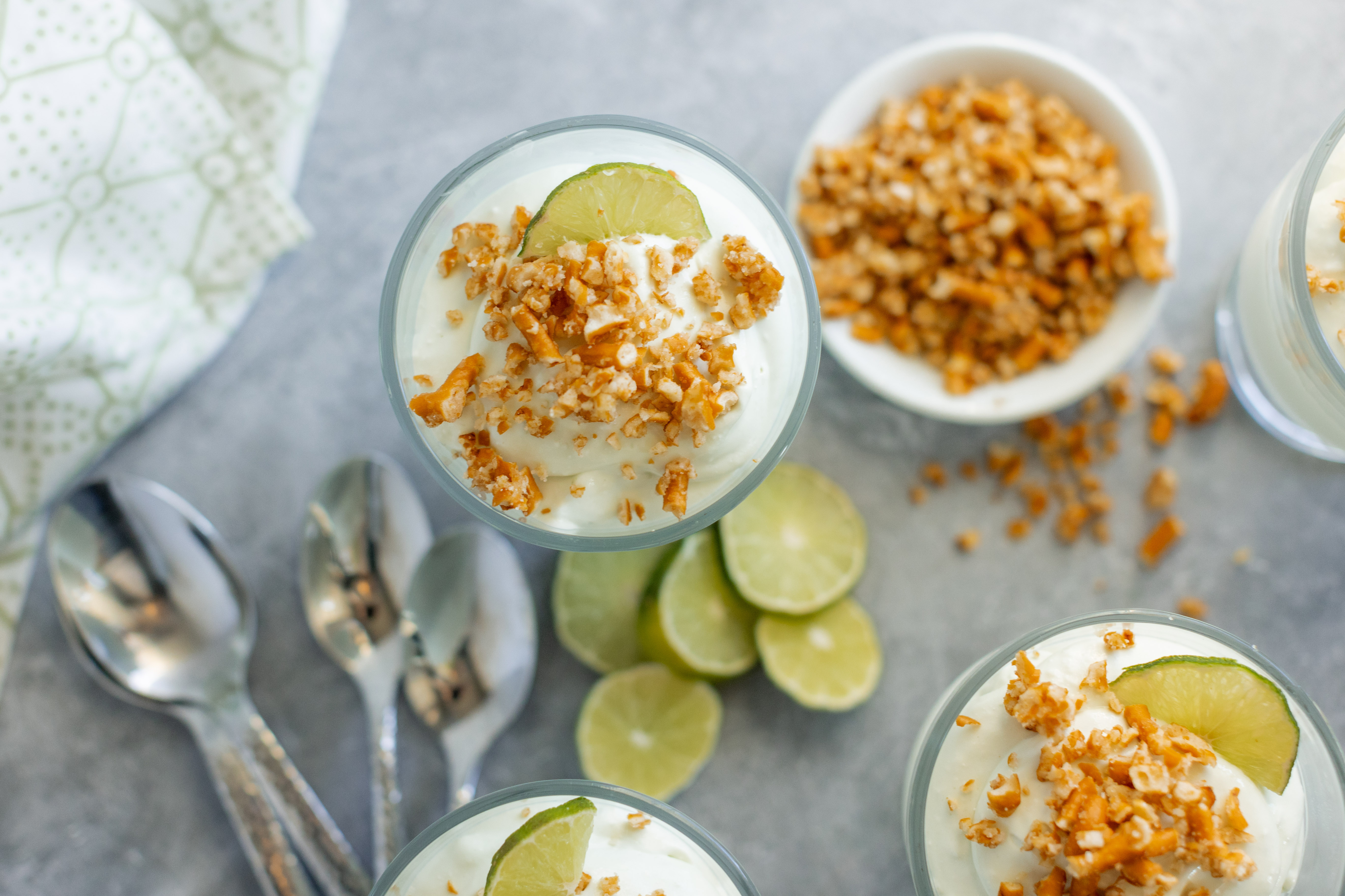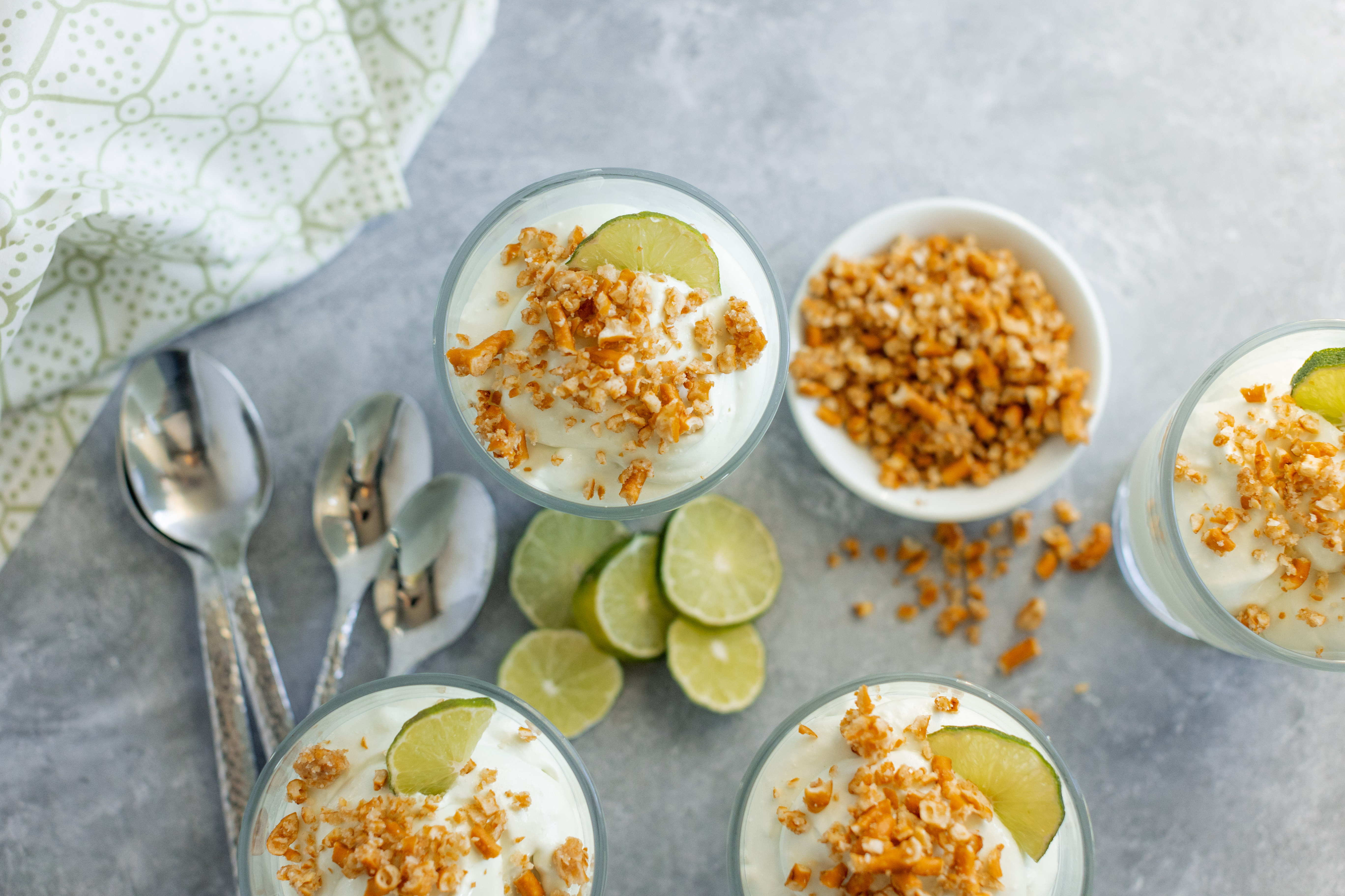Step 6 -Top each of the lime mixtures with about 1 tablespoon of the pretzel topping.