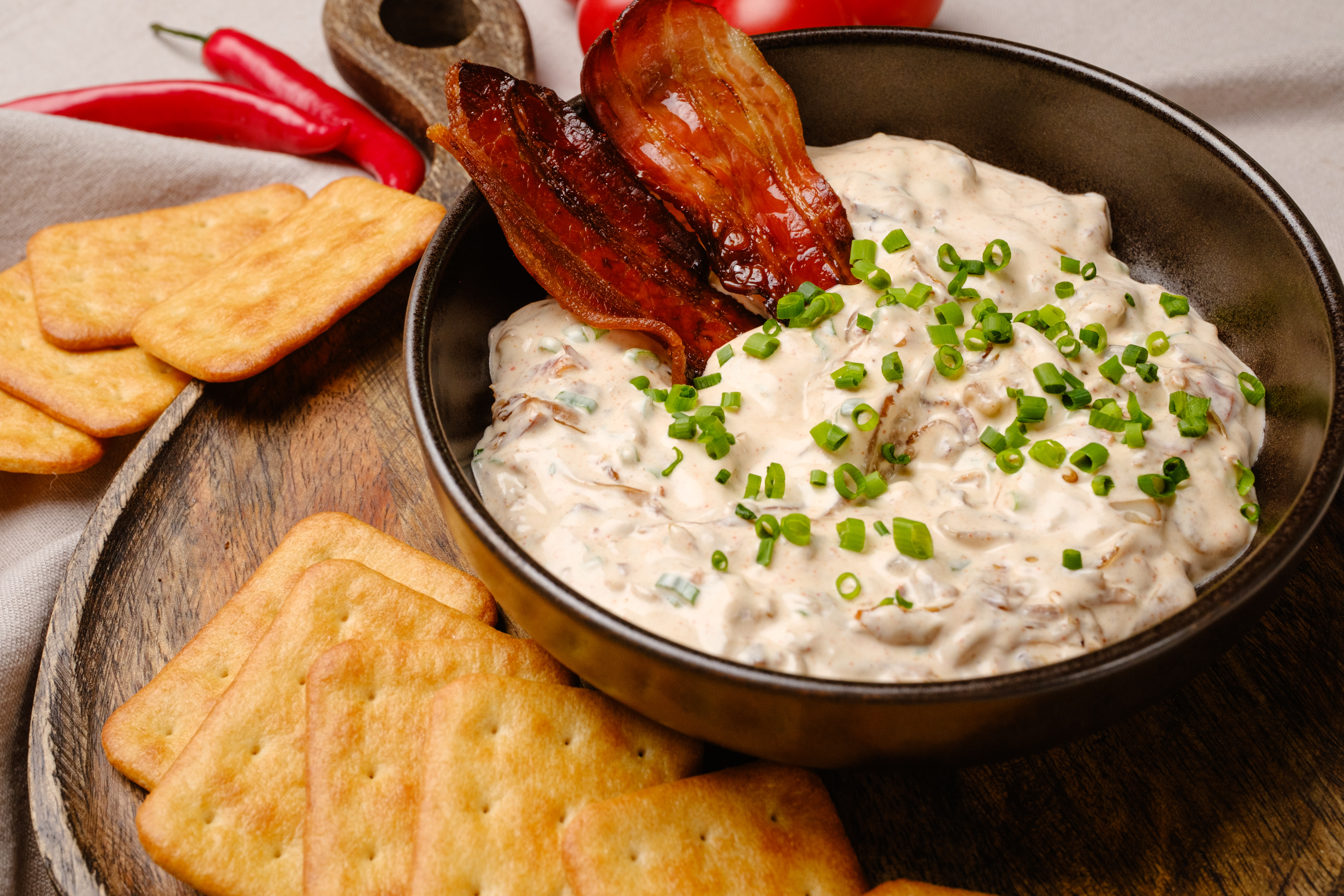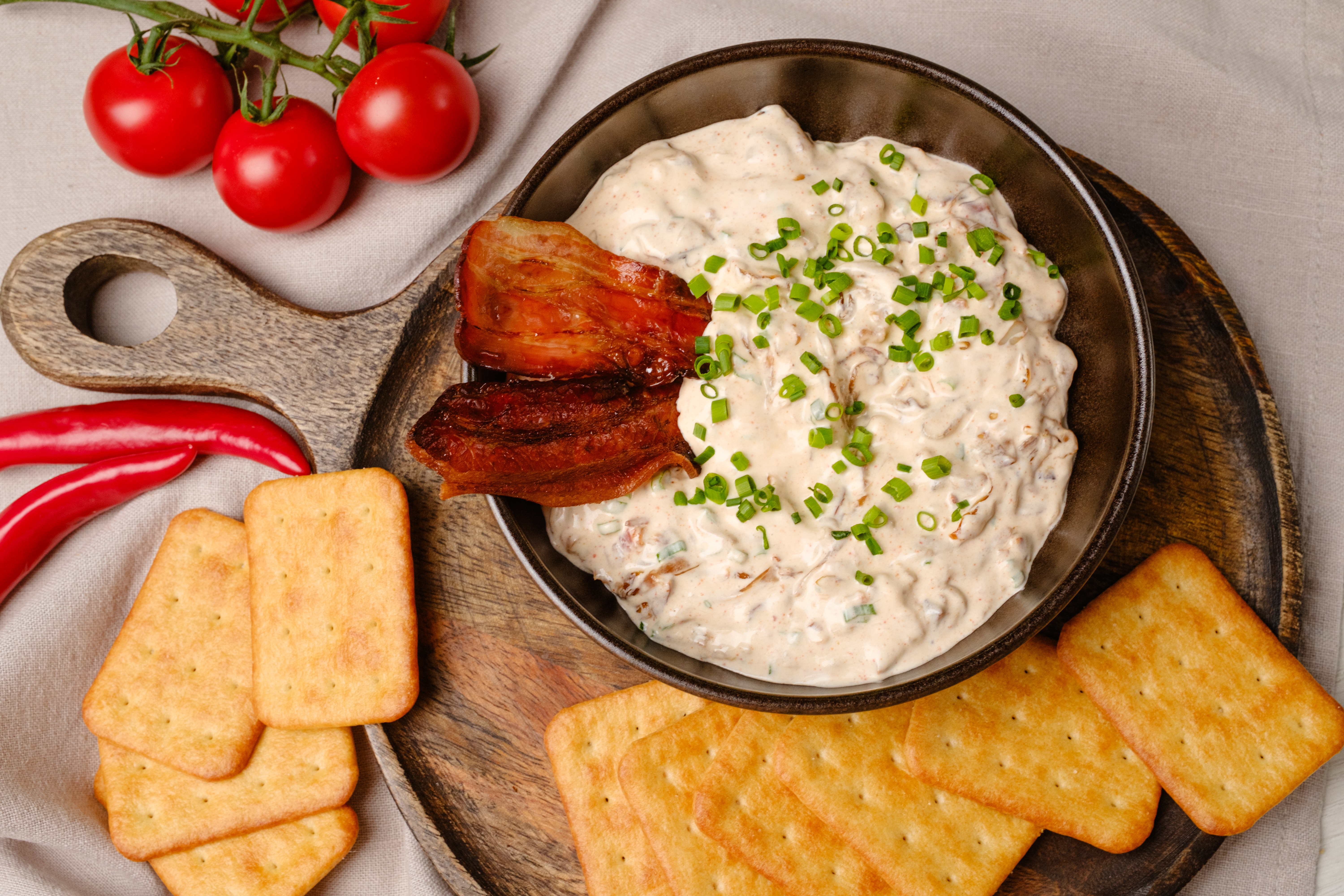 Step 15 -Serve the dip garnished with the extra chives and the remaining bacon strips.