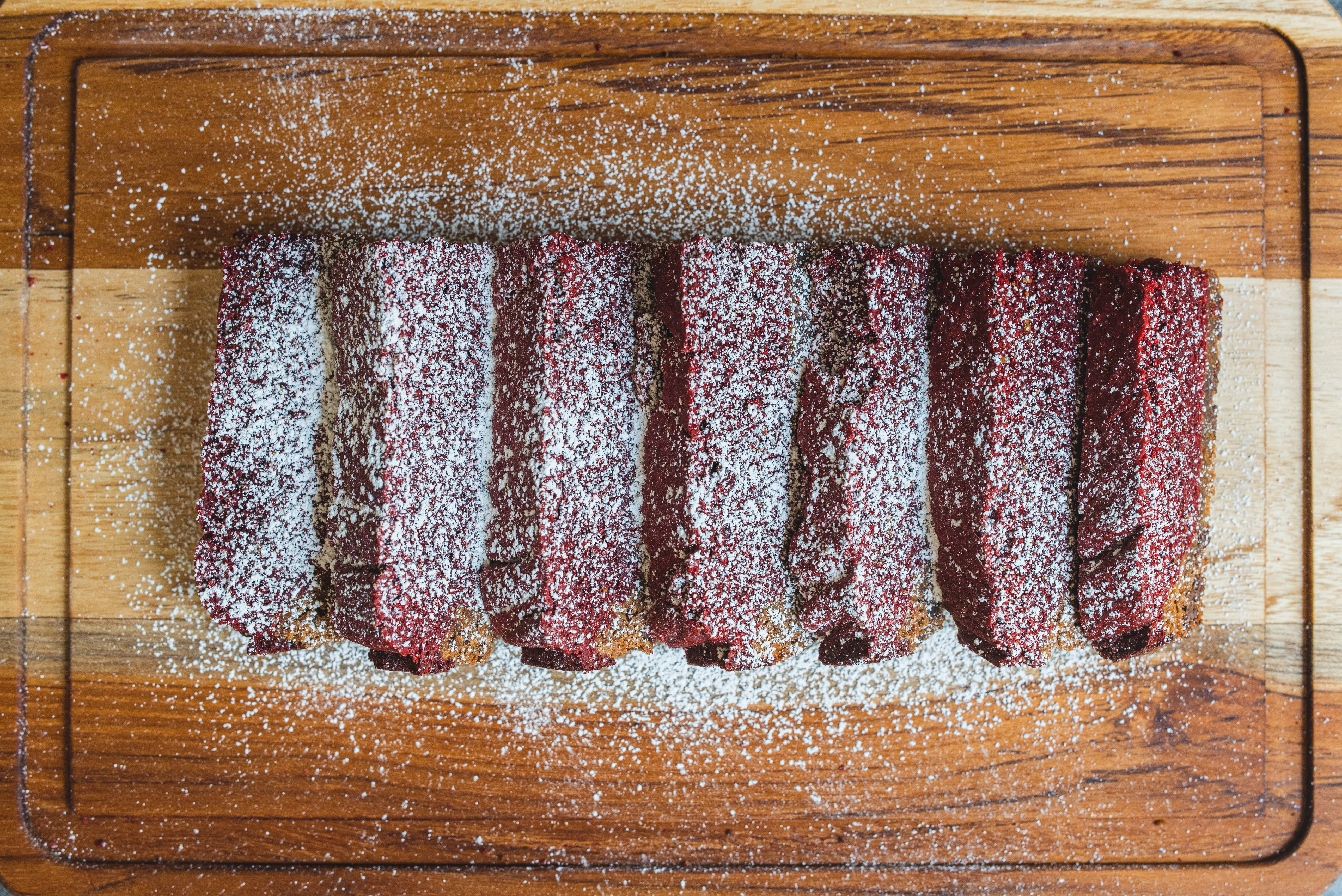 Step 10 -Cut the cake into bars and dust them with the powdered sugar.