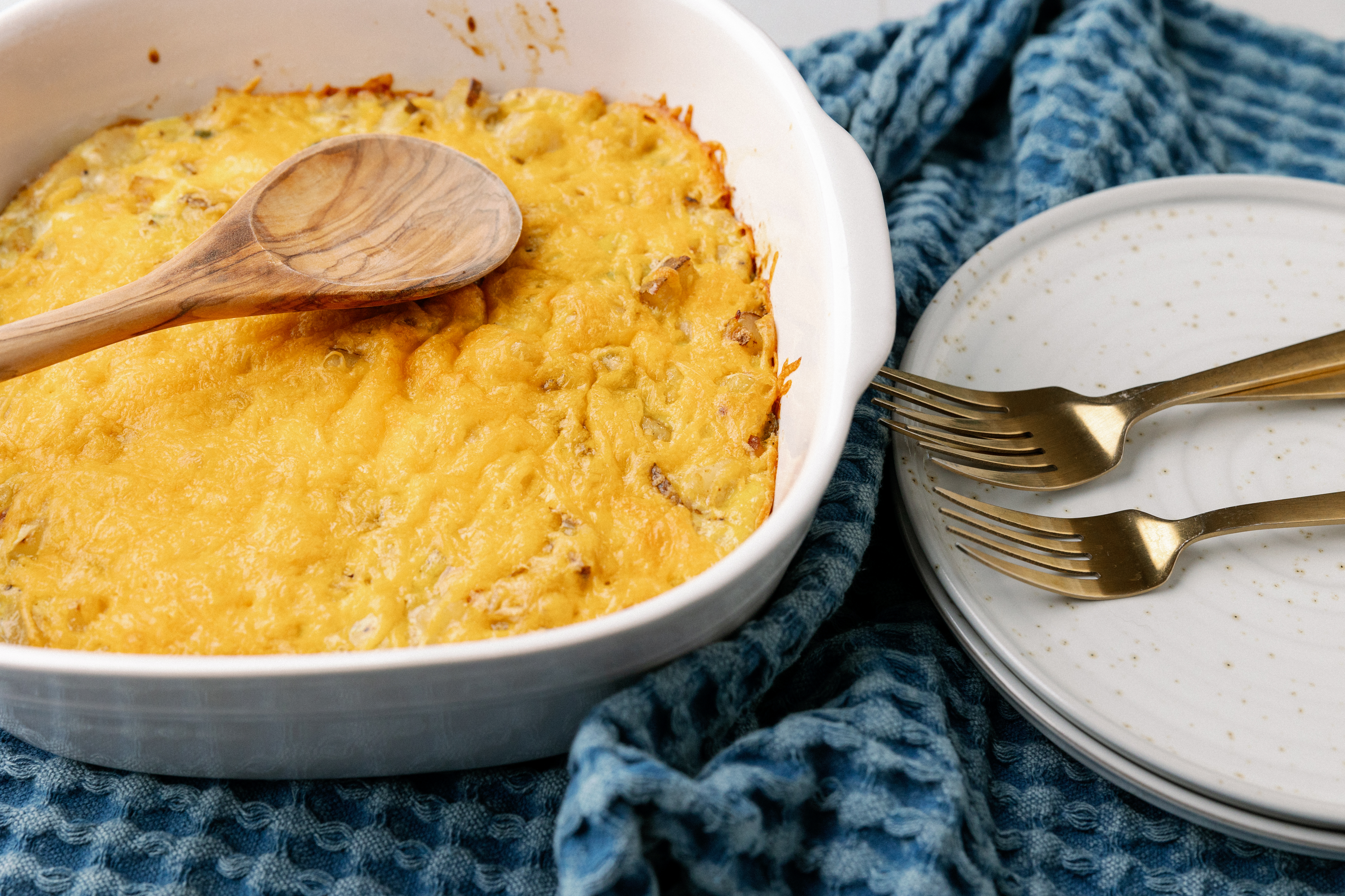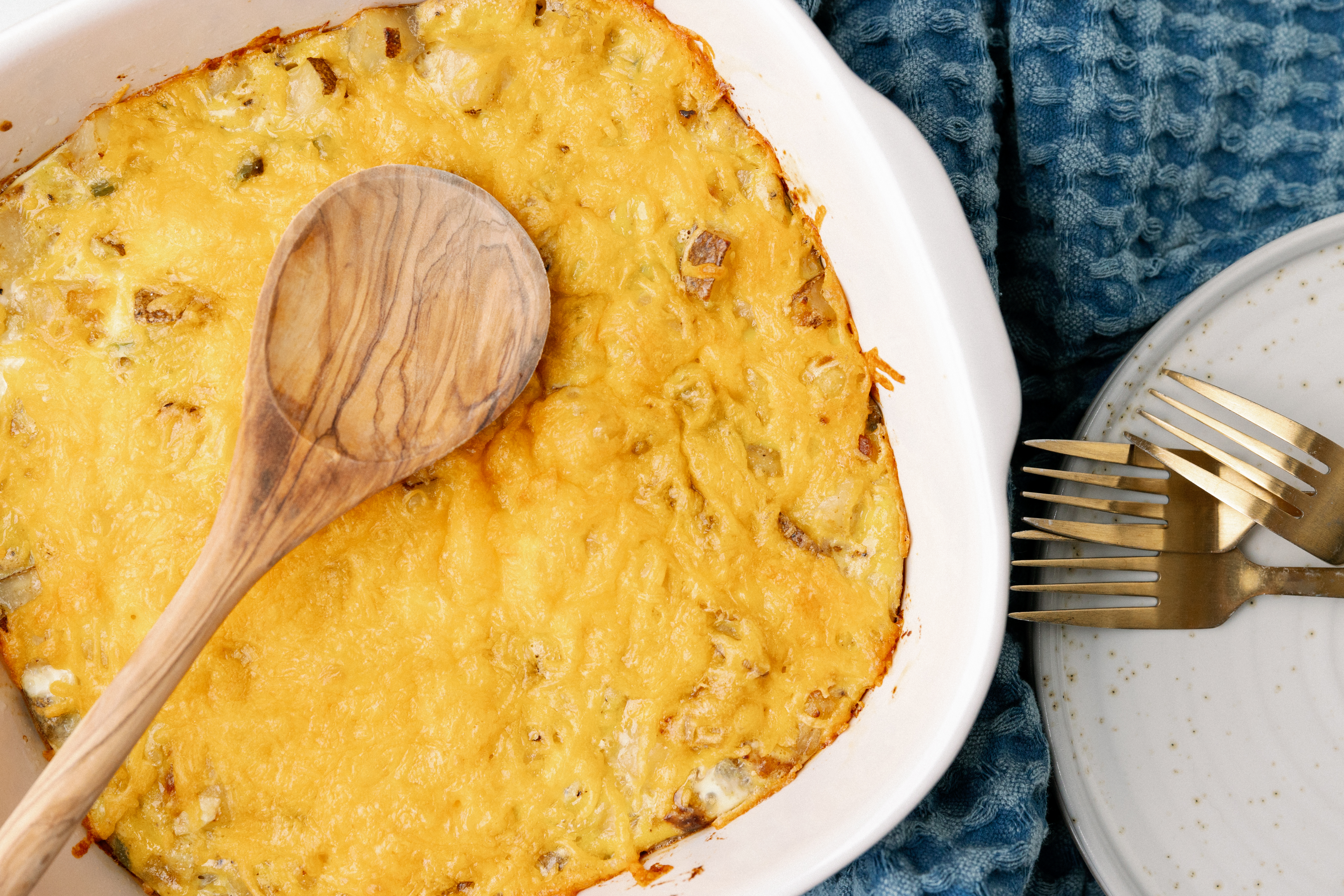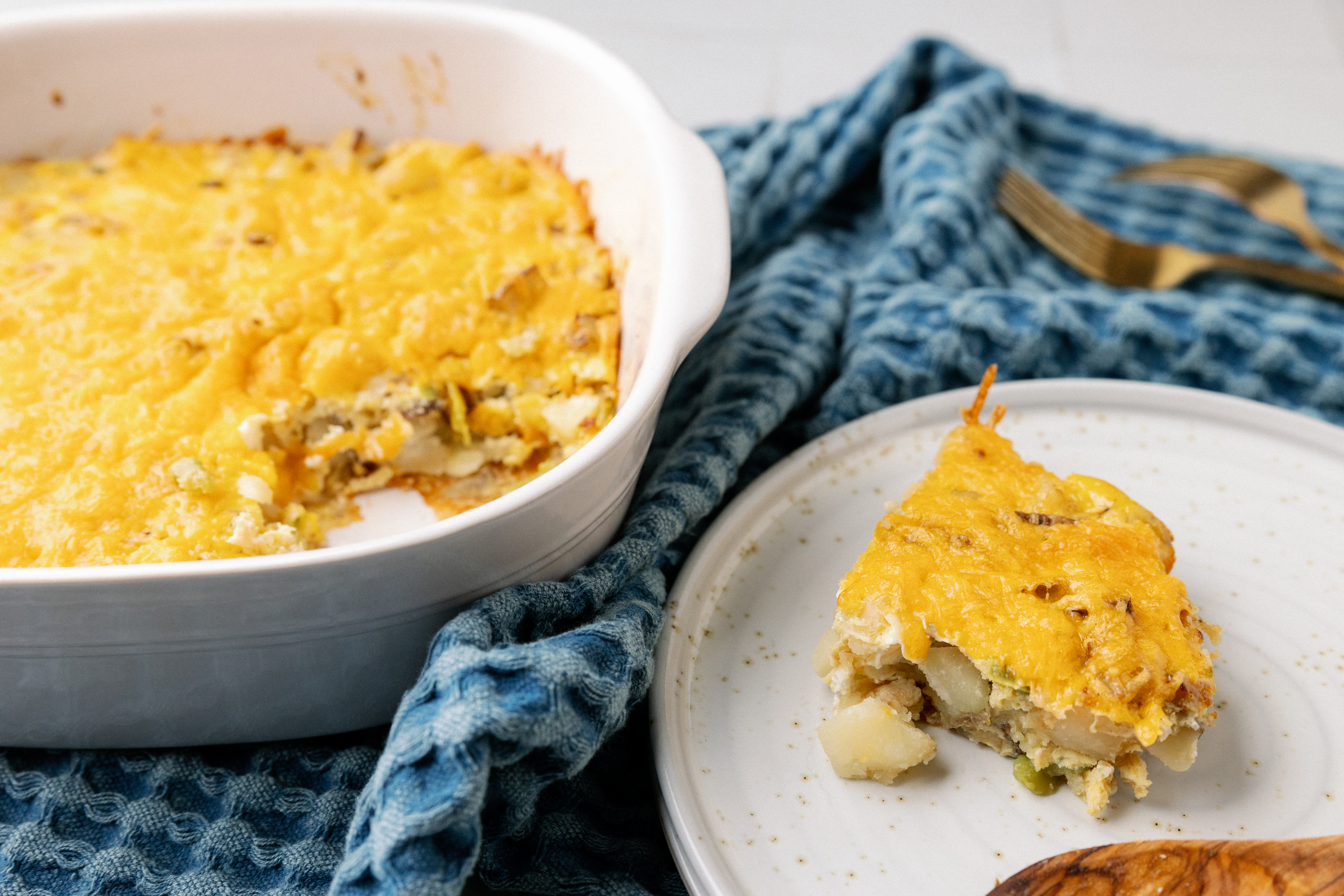 It really doesn't get much simpler than the Simple Breakfast Casserole! Fluffy eggs accompanied by some yummy, tender potatoes and classic breakfast vegetables for a touch of savory flavor and garden-freshness! All baked together with a blanket of cheddar cheese on top! There may not be anything fancy about Simple Breakfast Casserole, but it sure will impress your taste buds!