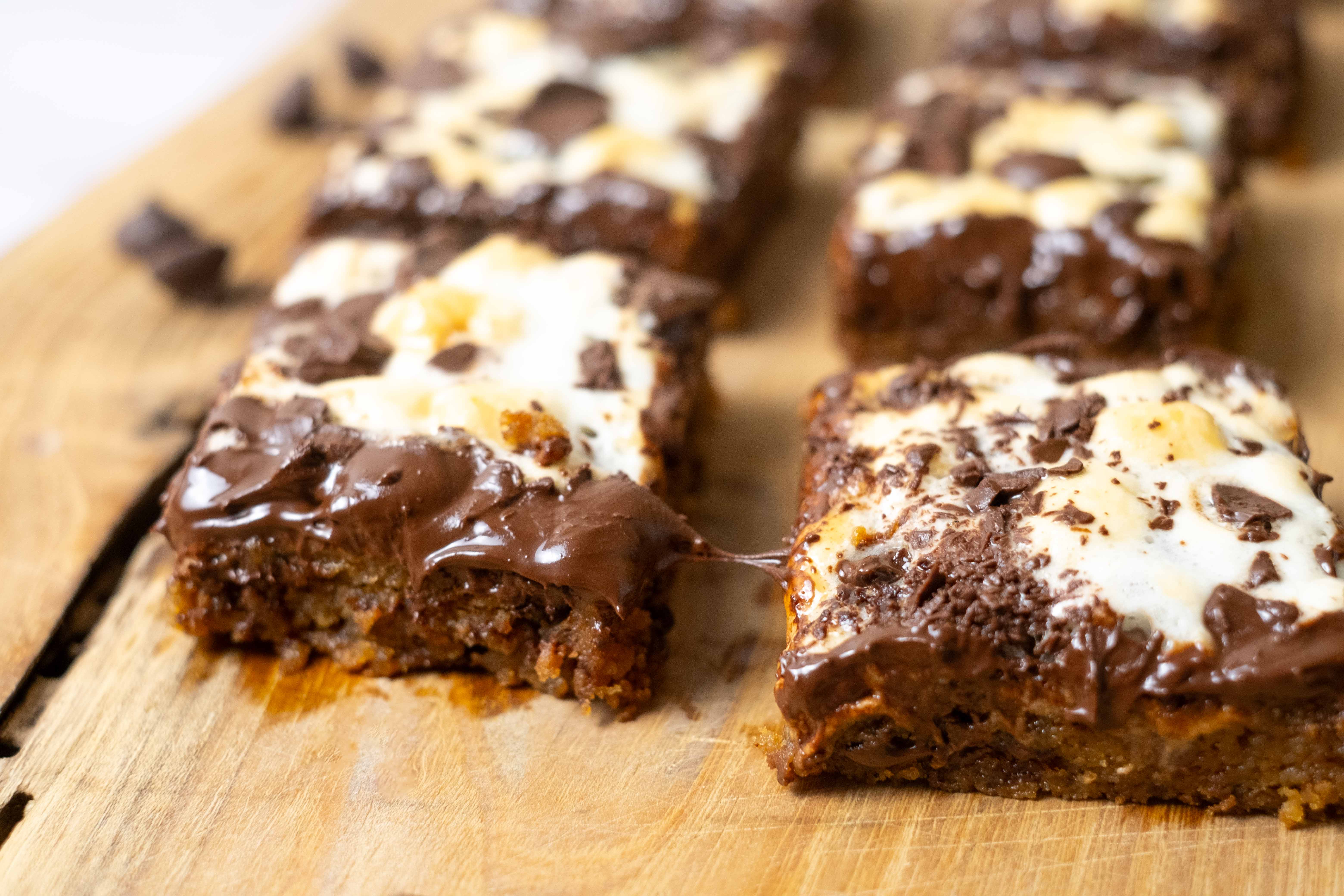 One campfire experience, hold the campfire? Everyone says "yes" for S'more Squares Please! These tasty blondies are made with graham cracker crumbs for an authentic s'mores taste, and topped with melty marshmallows and rich, sweet chocolate to complete the experience. Mmmm, why worry about whether your marshmallow is burning when you can make a perfect tasty s'more dessert anytime. More S'more Squares Please!