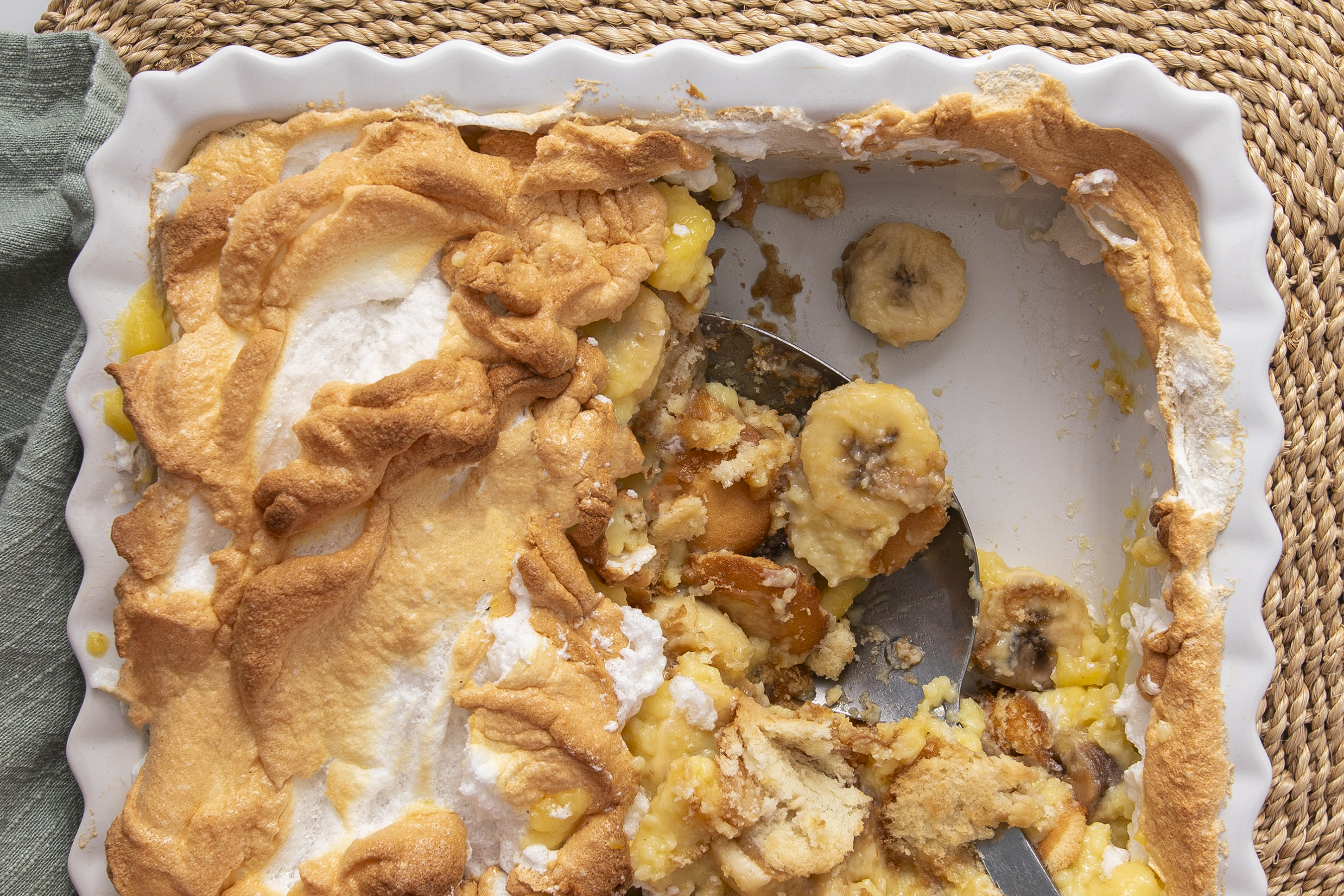 Step 12 -Spread the meringue over the pudding, spreading it to the edges of the baking dish.