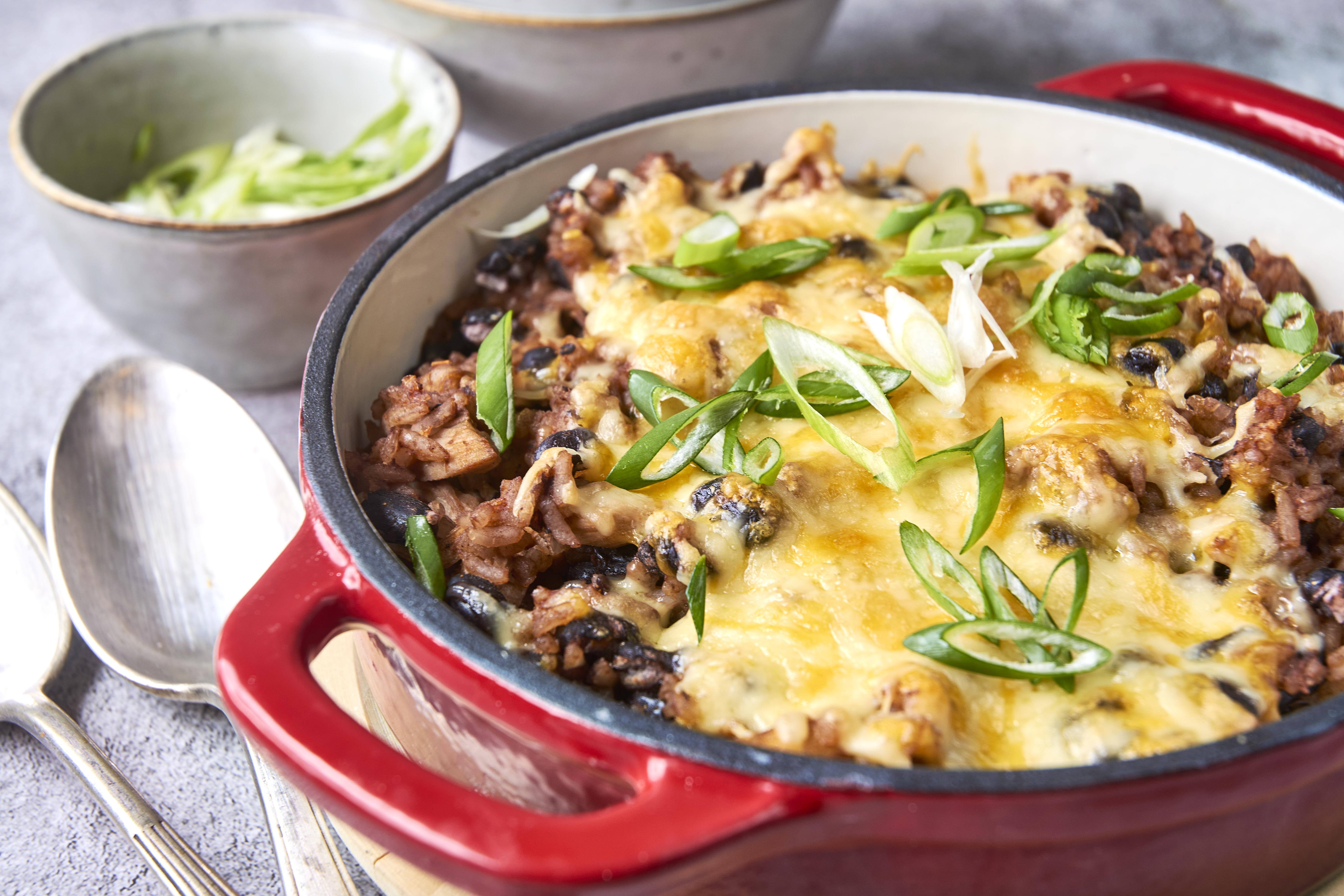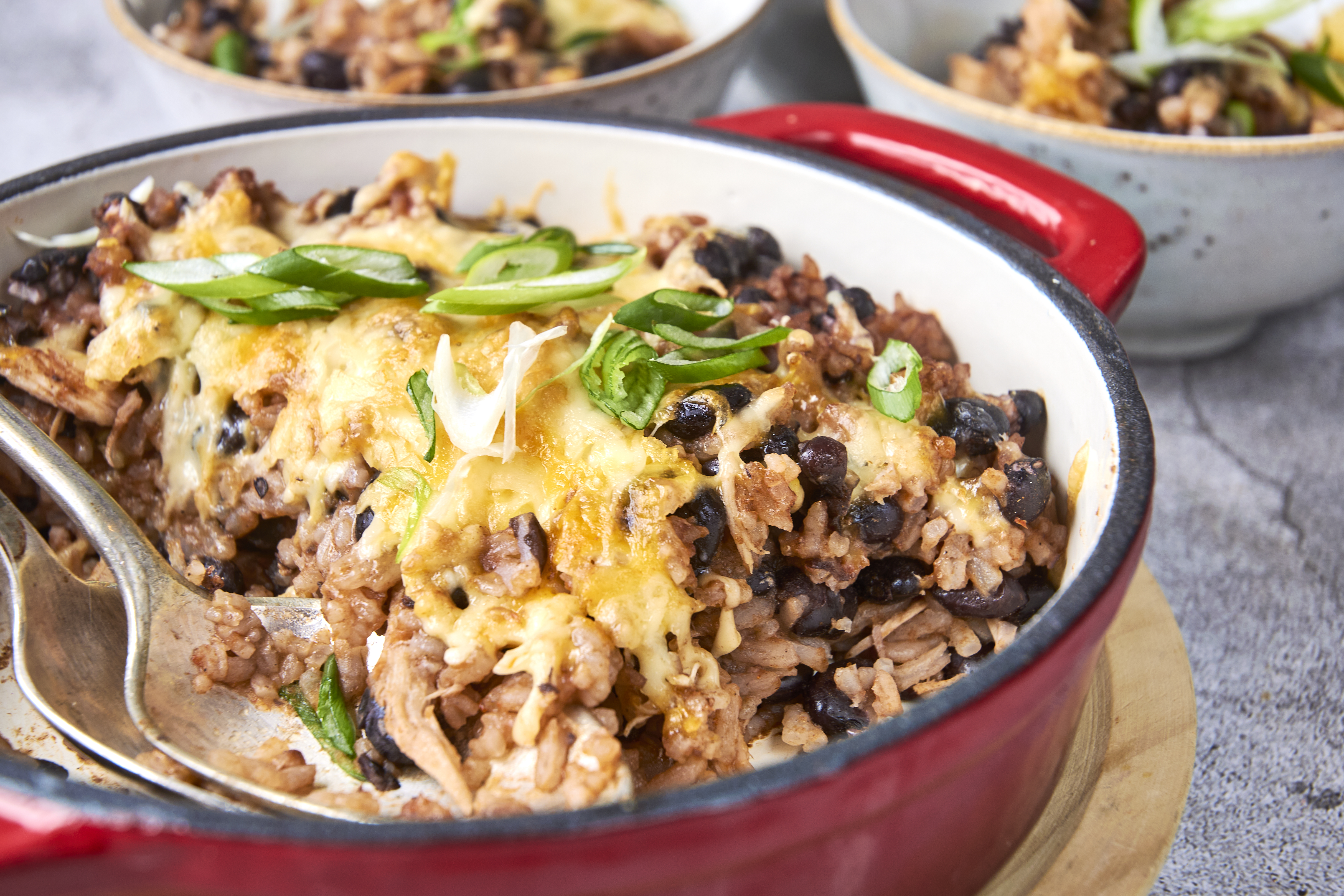 Southwest Garbage Skillet takes the concept of a "garbage plate" and adds some Tex-Mex flair to it! The rice is tender, the salsa is bright and exciting, the chicken is savory, the black beans are creamy and hearty... it's all here in one delicious jumble! Cheesy blankets on top of the Southwest Garbage Skillet add the final component to make this filling and fantastic dinner a true comfort!