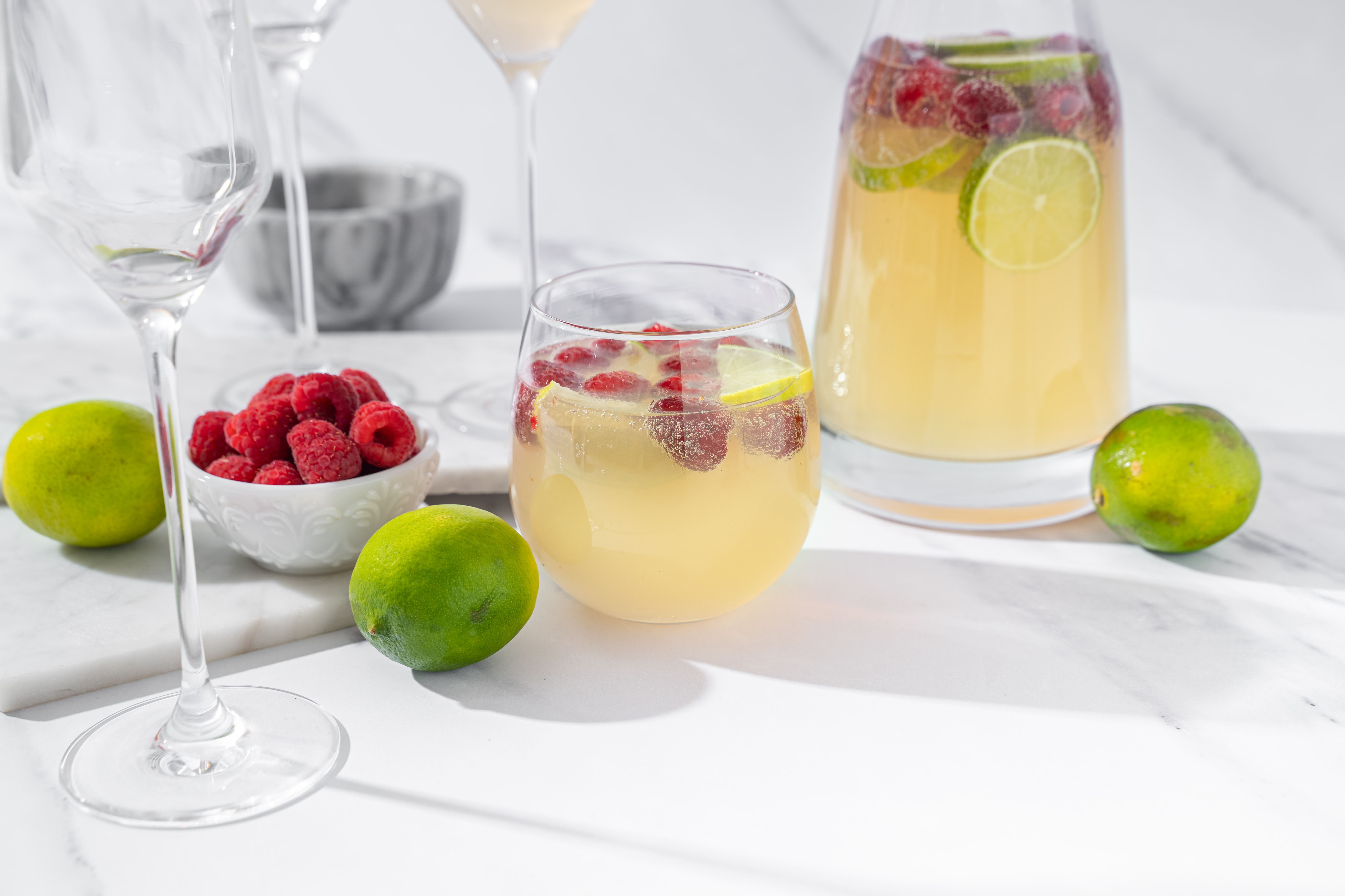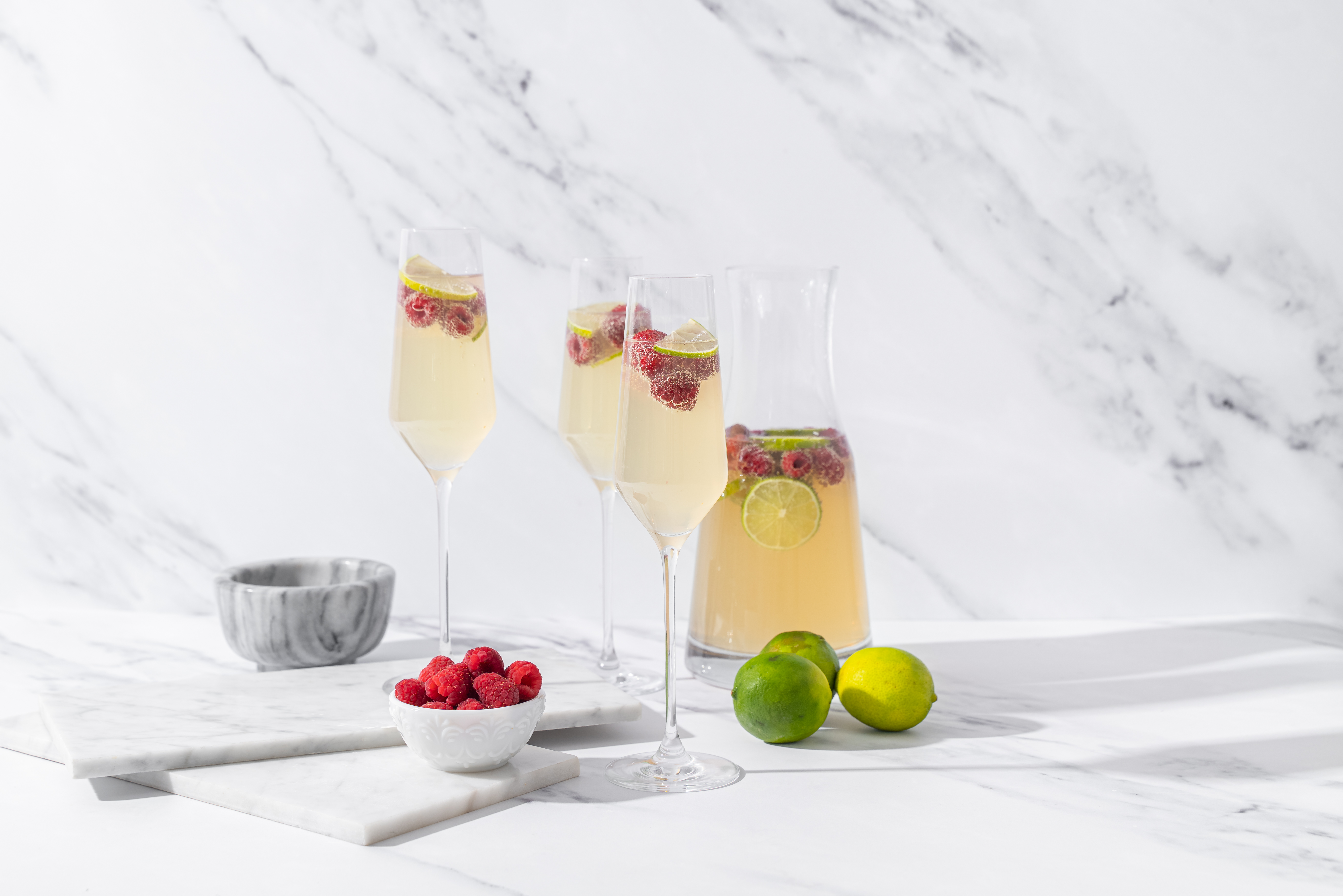 There's something sparkling and bubbling on the table, and it's got a real zip to it! This Summer Champagne Sipper is bright and sunny, with notes of tangy lime and distinct tonic weaving through this just-right-amount-of-sweet beverage. Bursts of fresh raspberries and glittering champagne make the Summer Champagne Sipper the perfect way to break the heat with style and class!