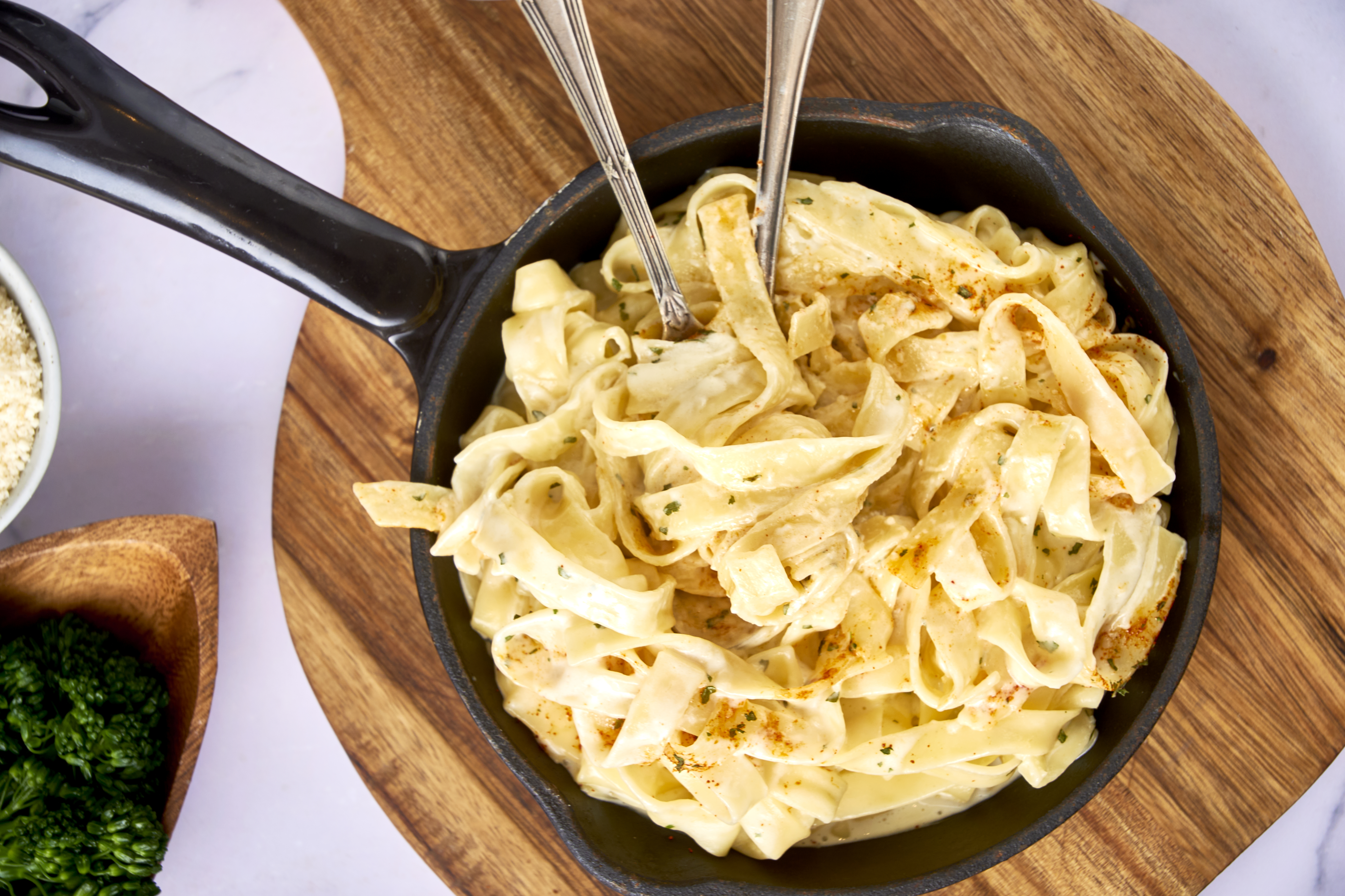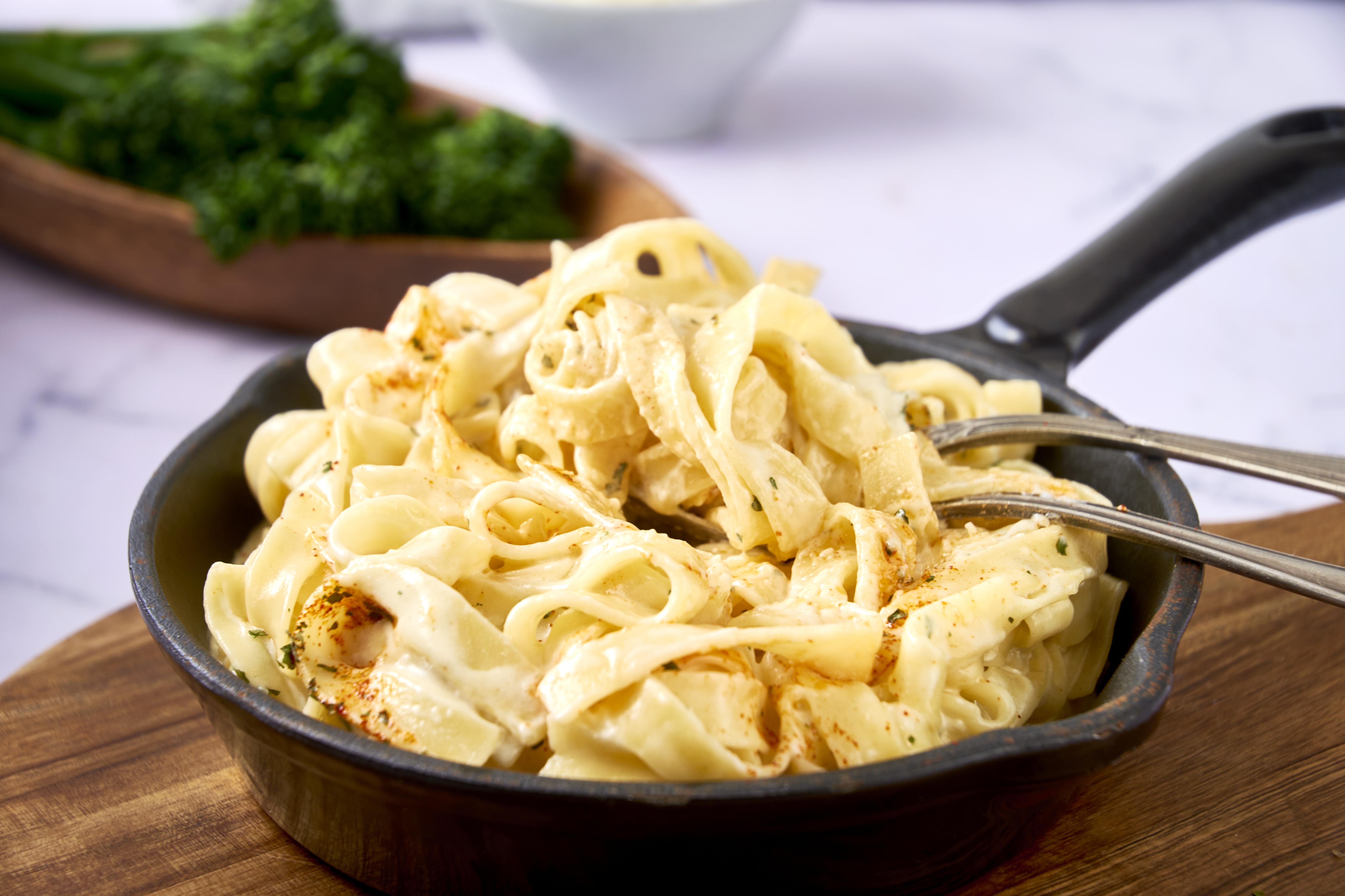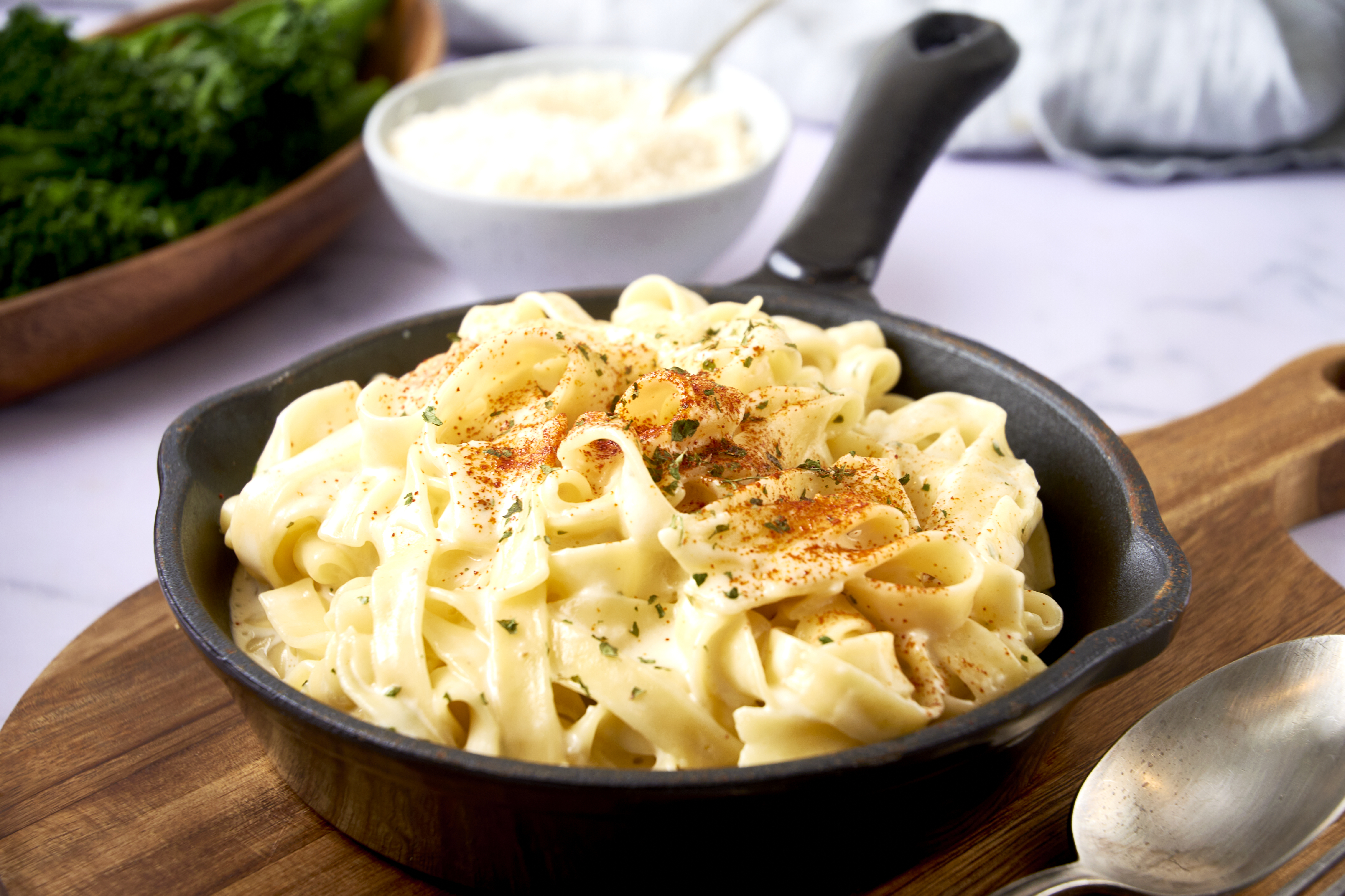 Don't be alarmed when you fall deeply in love with this pasta. In fact, we named this dish You're-The-One Fettuccine because every time someone new tried the perfect, al dente noodles in the creamy, cheesy sauce, they exclaimed they would never cook another type of pasta dish ever again! Love can do some pretty crazy things to a fella! So, we're just warning you... once you enjoy your single serving of You're-The-One Fettuccine, be prepared for a lifetime commitment to making it!